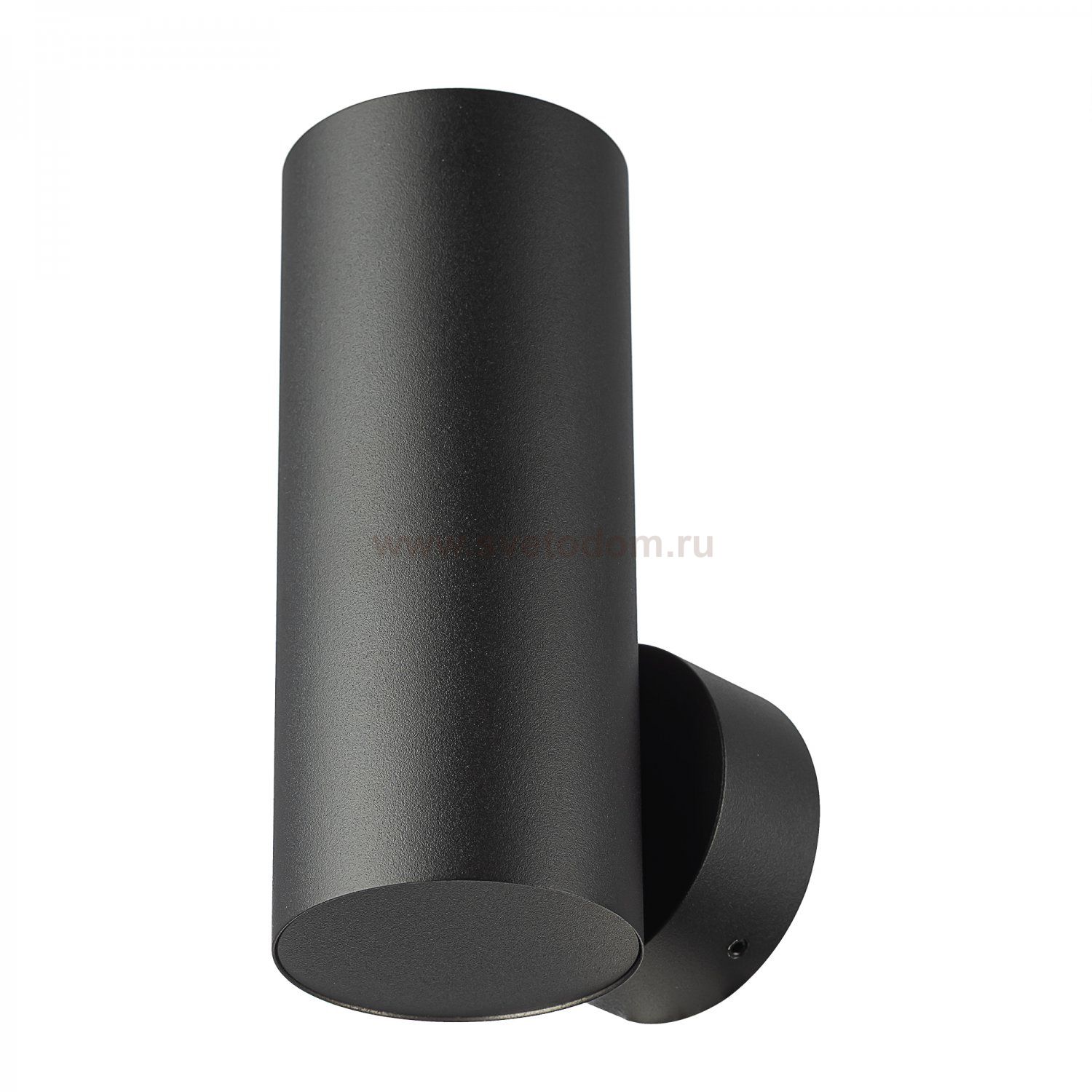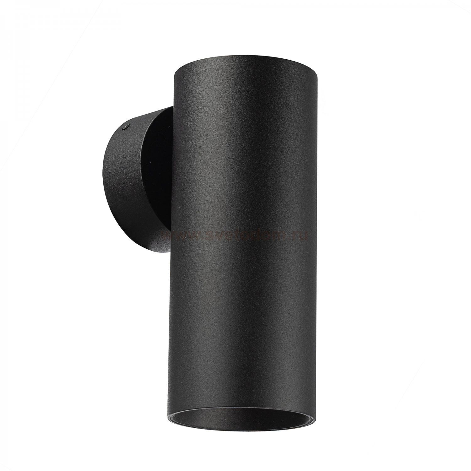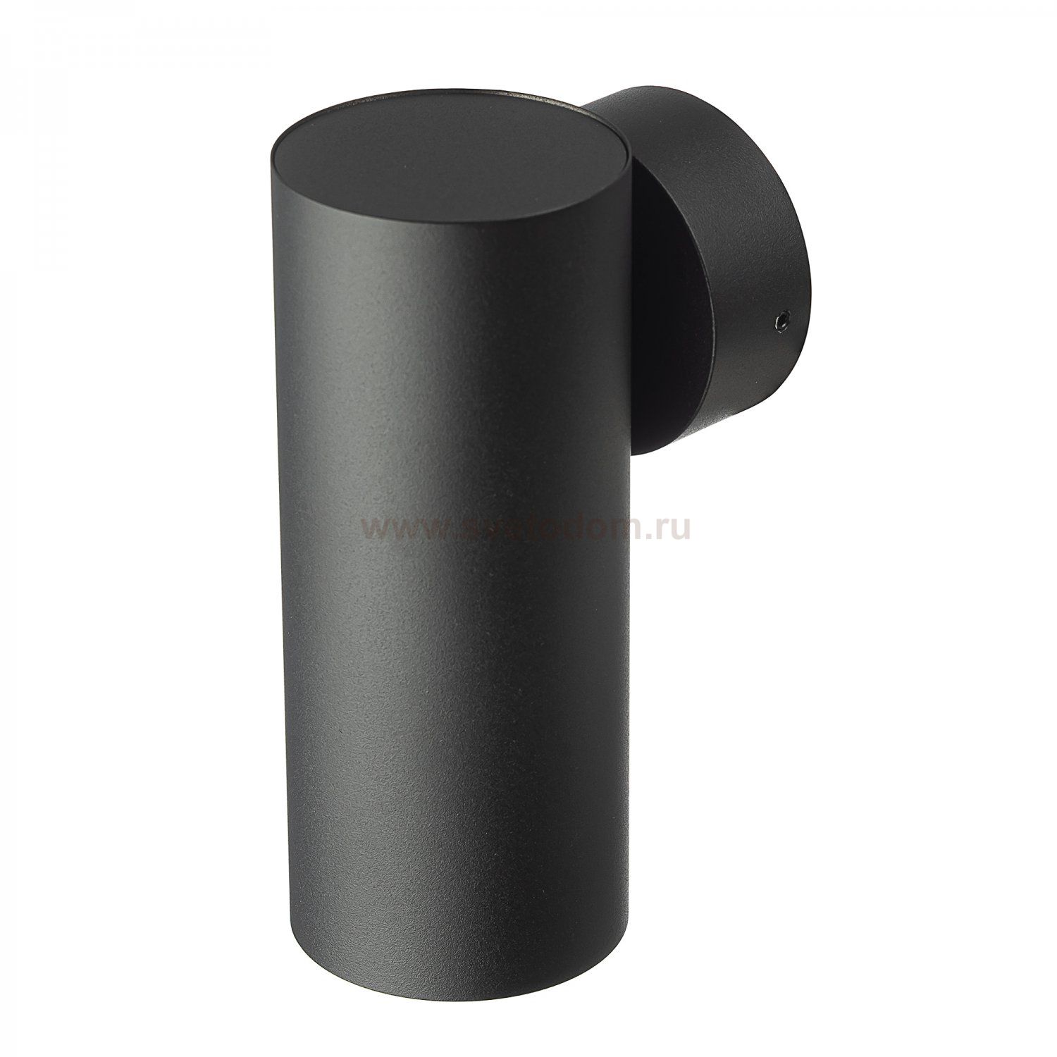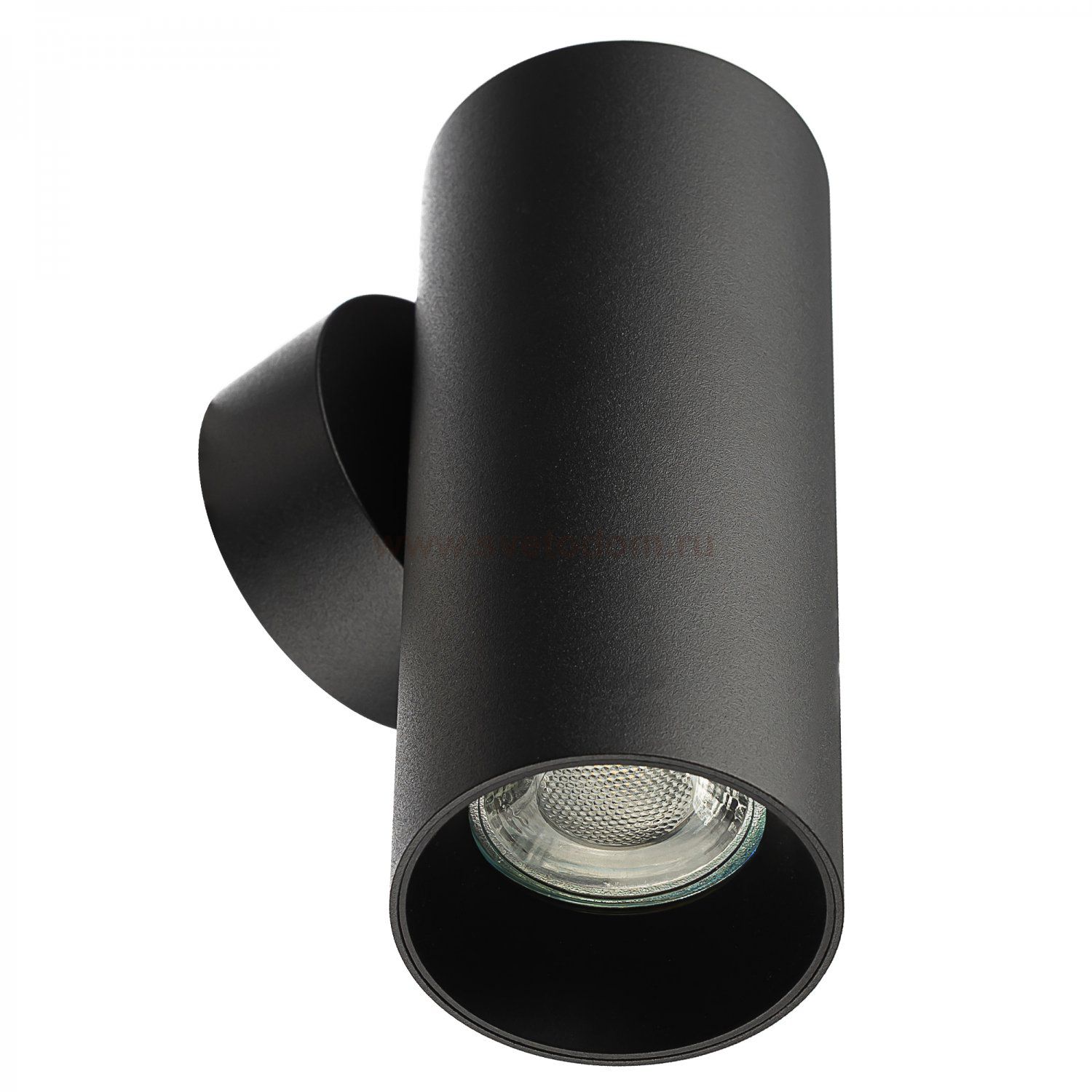 Корпус модели металлический, стильного черного оттенка, плафон цилиндрической формы, длиной 14,5см. Источником света служит светодиодная лампочка с цоколем GU10 мощностью не более 10Вт, тип крепления — планка.