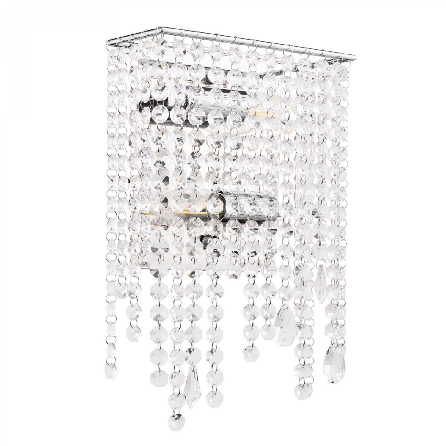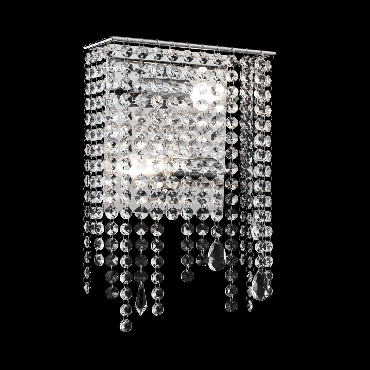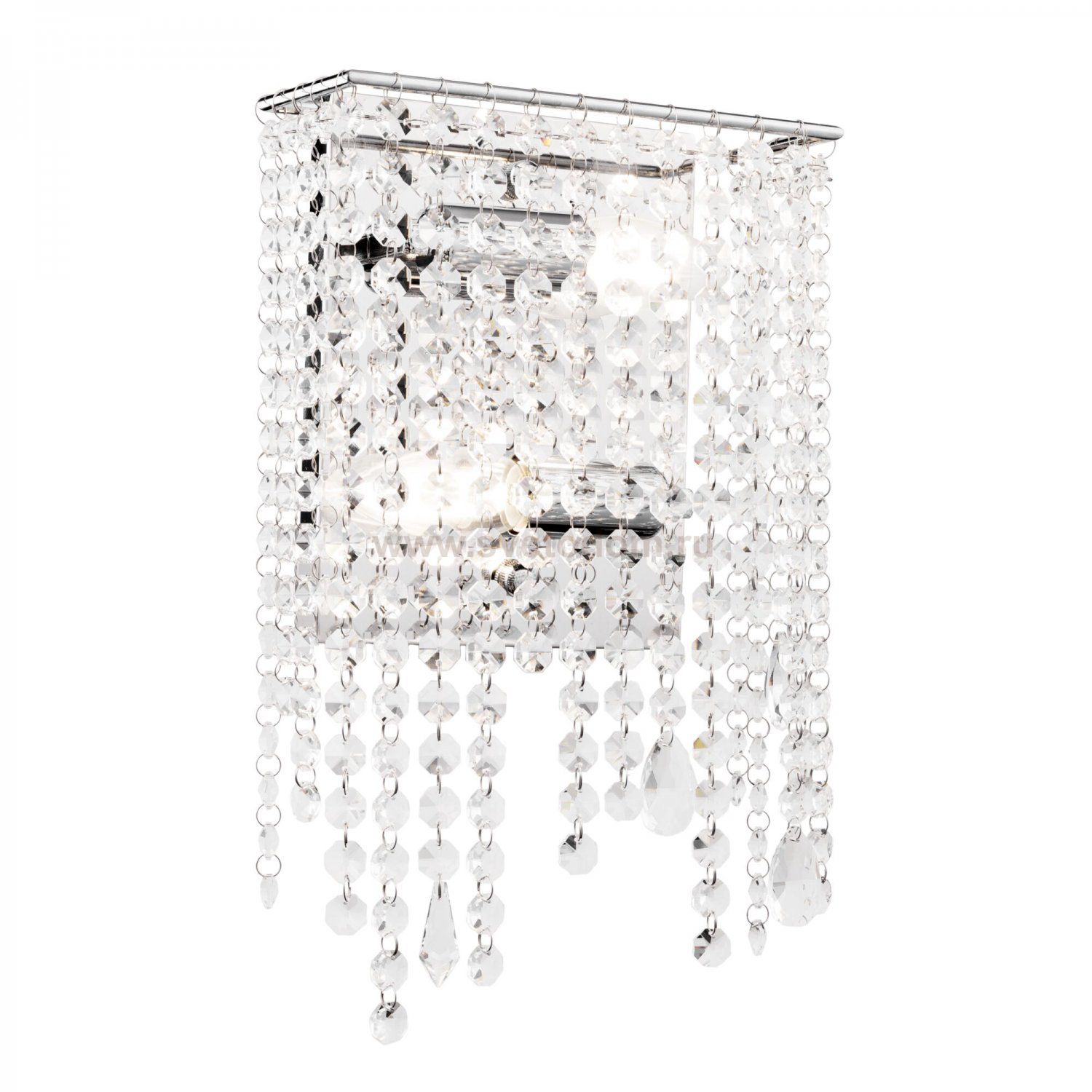 Арматура из металла в цвете хром. Декор – подвески из прозрачного хрусталя. Оригинальная прямоугольная форма. Высота светильников регулируется тросом.