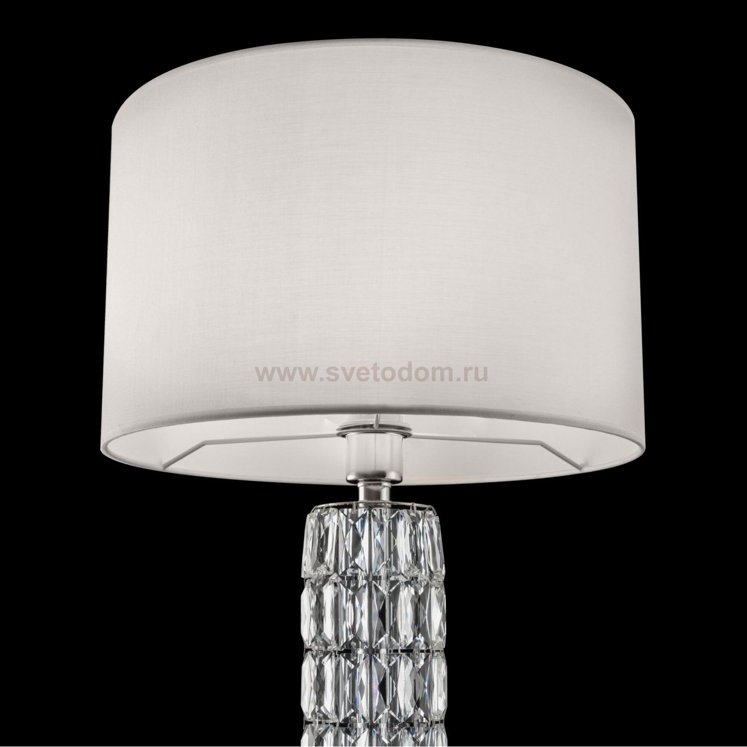 Арматура из металла, цвет – хром. Абажуры из текстиля, нанесенного на ПВХ. Цвет – белый. Декор – массивные кристаллы сложной огранки. Высота подвесных моделей регулируется.
