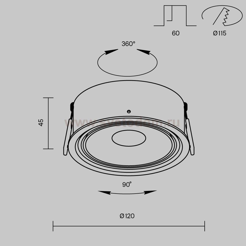 Данный размер указывает какое отверстие необходимо сделать для правильного монтажа. Зачастую светильники выбирают после ремонта и сделанных монтажных отверстий, тогда подбор осуществляется строго в размер +/- 2-5мм.