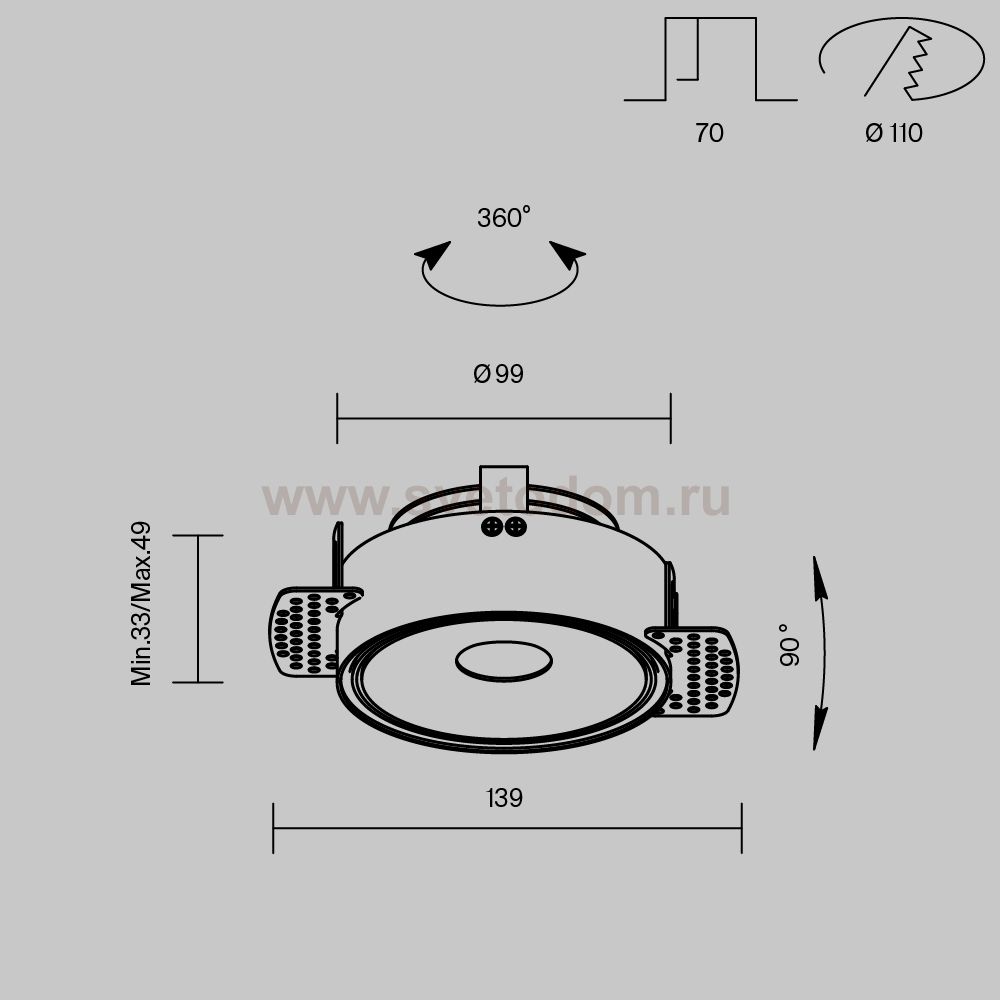 Данный размер указывает какое отверстие необходимо сделать для правильного монтажа. Зачастую светильники выбирают после ремонта и сделанных монтажных отверстий, тогда подбор осуществляется строго в размер +/- 2-5мм.