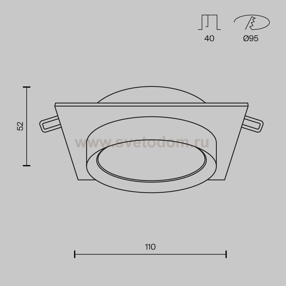 Данный размер указывает какое отверстие необходимо сделать для правильного монтажа. Зачастую светильники выбирают после ремонта и сделанных монтажных отверстий, тогда подбор осуществляется строго в размер +/- 2-5мм.