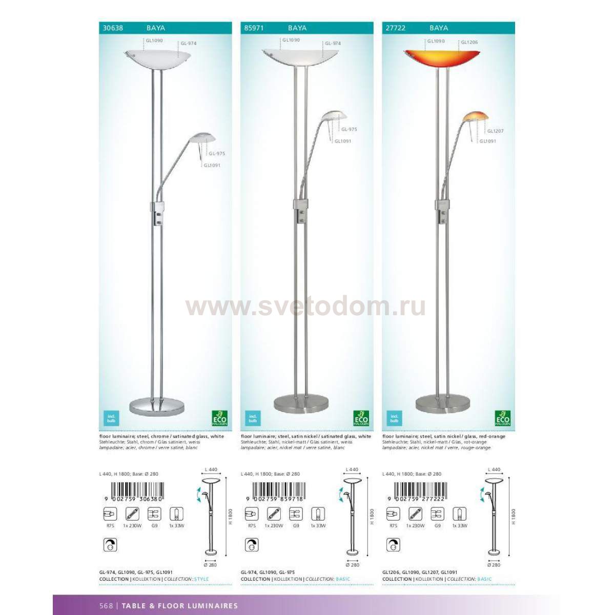ET0451 GL-974 GL-975 GL1091 ET0295 GL-861 ET1119 Отзывы Торшер напольный Eglo 30638 BAYAПока нет отзывов об этом товаре, напишите и он обязательно появится после модерации! Оставить свой отзывПохожие товары Другие товары магазина Фото