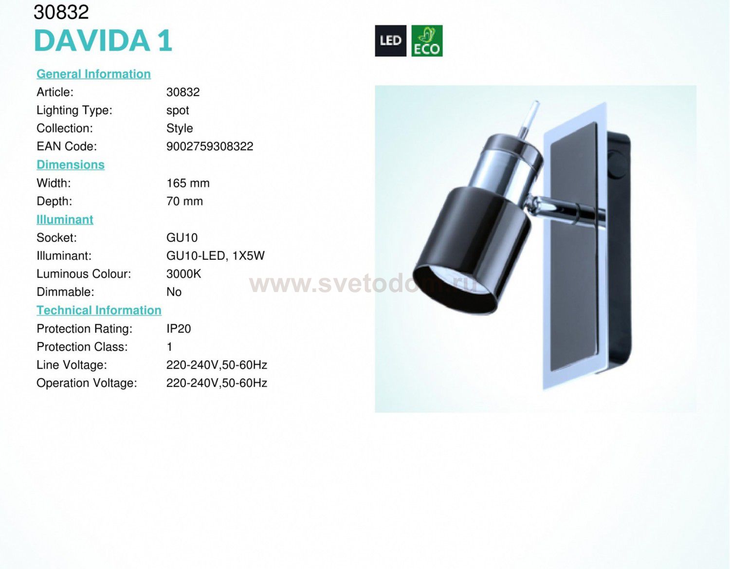 Светильники-споты – это оригинальные изделия с современным дизайном. Они позволяют не ограничивать свою фантазию при выборе освещения для интерьера. Такие модели обеспечивают достаточно качественный свет. Благодаря компактным размерам Вы можете использовать несколько спотов для одного помещения. Интернет-магазин «Светодом» предлагает необычный светильник-спот Eglo 30832 по привлекательной цене. Эта модель станет отличным дополнением к люстре, выполненной в том же стиле. Перед оформлением заказа изучите характеристики изделия. Купить светильник-спот Eglo 30832 в нашем онлайн-магазине Вы можете либо с помощью формы на сайте, либо по указанным выше телефонам. Обратите внимание, что у нас склады не только в Москве и Екатеринбурге, но и других городах России.