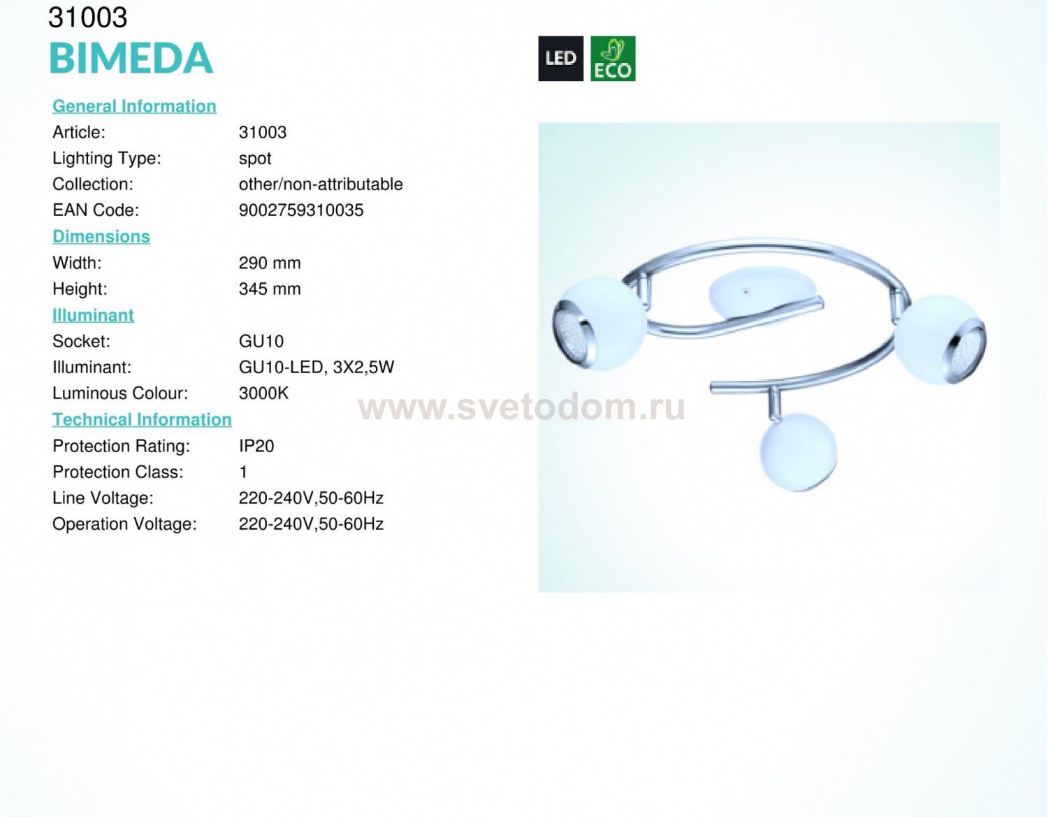 Светильники-споты – это оригинальные изделия с современным дизайном. Они позволяют не ограничивать свою фантазию при выборе освещения для интерьера. Такие модели обеспечивают достаточно качественный свет. Благодаря компактным размерам Вы можете использовать несколько спотов для одного помещения. Интернет-магазин «Светодом» предлагает необычный светильник-спот Eglo 31003 по привлекательной цене. Эта модель станет отличным дополнением к люстре, выполненной в том же стиле. Перед оформлением заказа изучите характеристики изделия. Купить светильник-спот Eglo 31003 в нашем онлайн-магазине Вы можете либо с помощью формы на сайте, либо по указанным выше телефонам. Обратите внимание, что у нас склады не только в Москве и Екатеринбурге, но и других городах России.