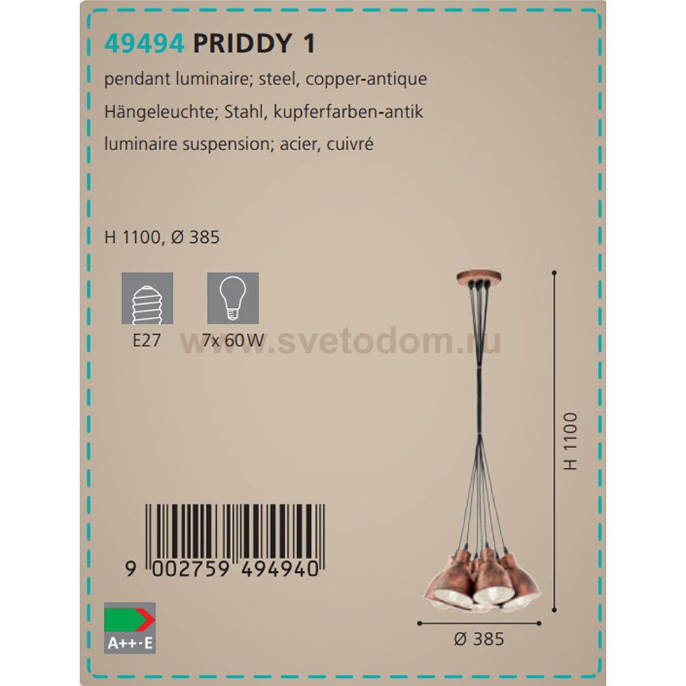 Подвесной потолочный светильник (люстра) PRIDDY 1 Комментарий