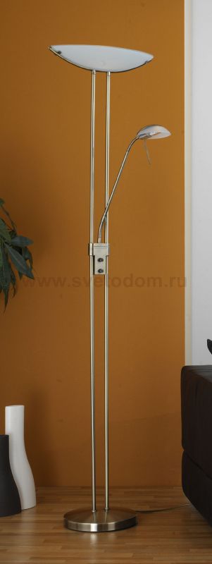 Австрийское качество модели светильника Eglo 85974 не оставит равнодушным каждого купившего! Основание сталь с бронзовым покрытием, опаловое стекло белого цвета, дополнительный светильник для чтения с отдельным выключателем, Класс изоляции 2 (плоская вилка, двойная изоляция от вилки до лампы), IP 20, освещенность 3180 lm Н=1800,L=440.
