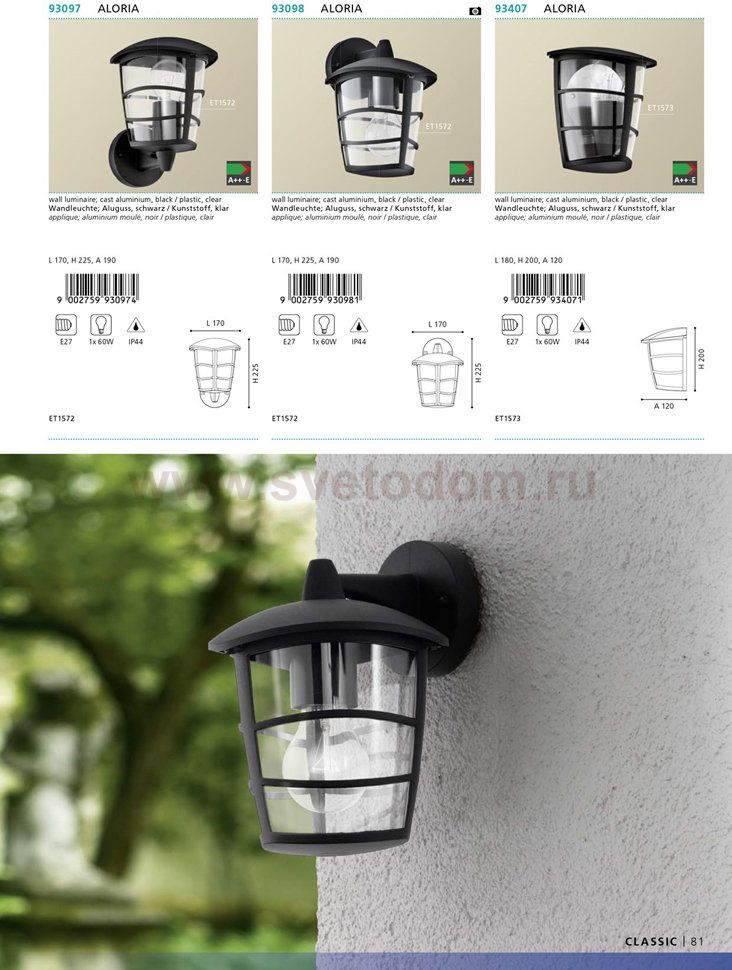 Уличный настенный светильник ALORIA Комментарий