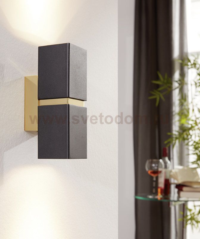 Светодиодное бра PASSA, 2х3,3W(GU10), L55, H170, сталь, черный, золотой применяется преимущественно в домашнем освещении с использованием стандартных выключателей и переключателей для сетей 220V.