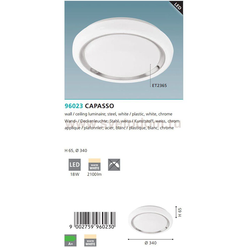 Светодиодный настенно-потолочный светильник CAPASSO, 18W(LED), ?340, сталь, белый/пластик, белый, хром применяется преимущественно в домашнем освещении с использованием стандартных выключателей и переключателей для сетей 220V.