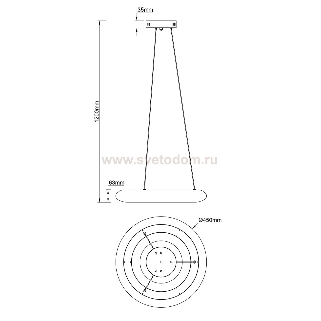 Подвесной светодиодный светильник 30Вт, 2106Лм, 3000-6500К, Ra>80, изменение цветовой температуры, плавная регулировка мощности, ночник, пульт, металл/акрил, белый