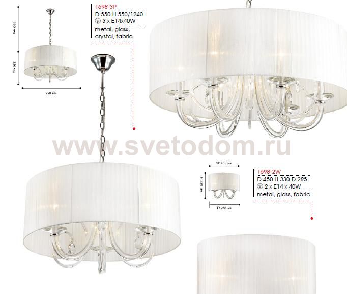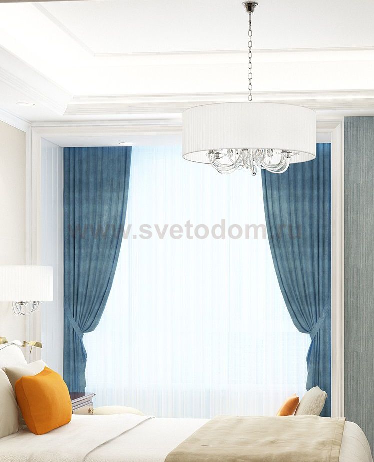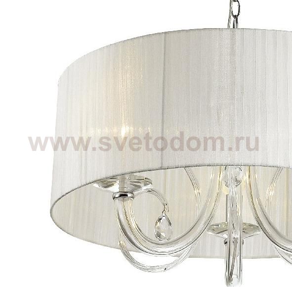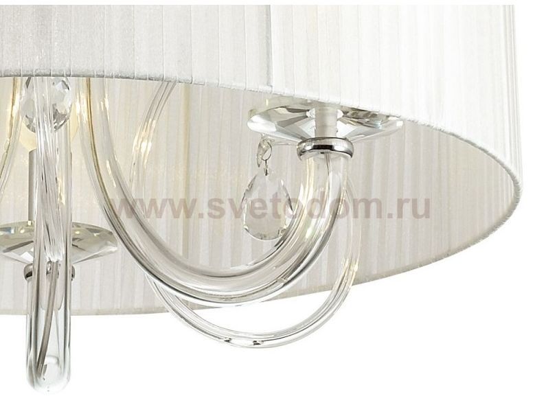 металл хром, выдувное стекло, хрусталь, белая органза Материал плафона