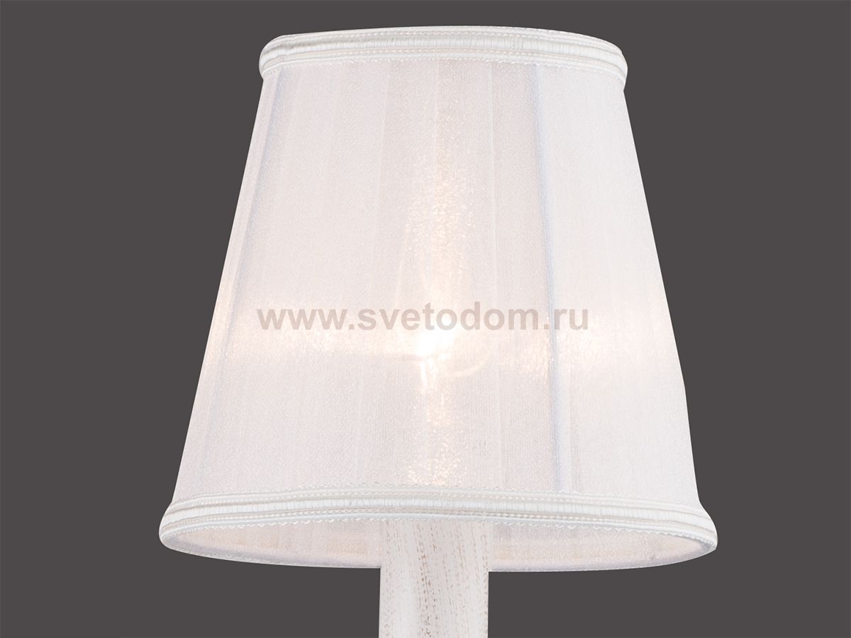 каркас окрашен в белый цвет с золотой патиной, тканевый абажур из белой органзы украшен белой тесьмой Штрих-код