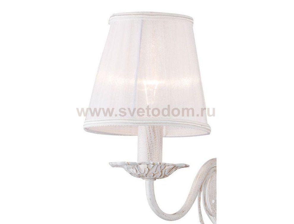 каркас окрашен в белый цвет с золотой патиной, тканевый абажур из белой органзы украшен белой тесьмой Материал плафона