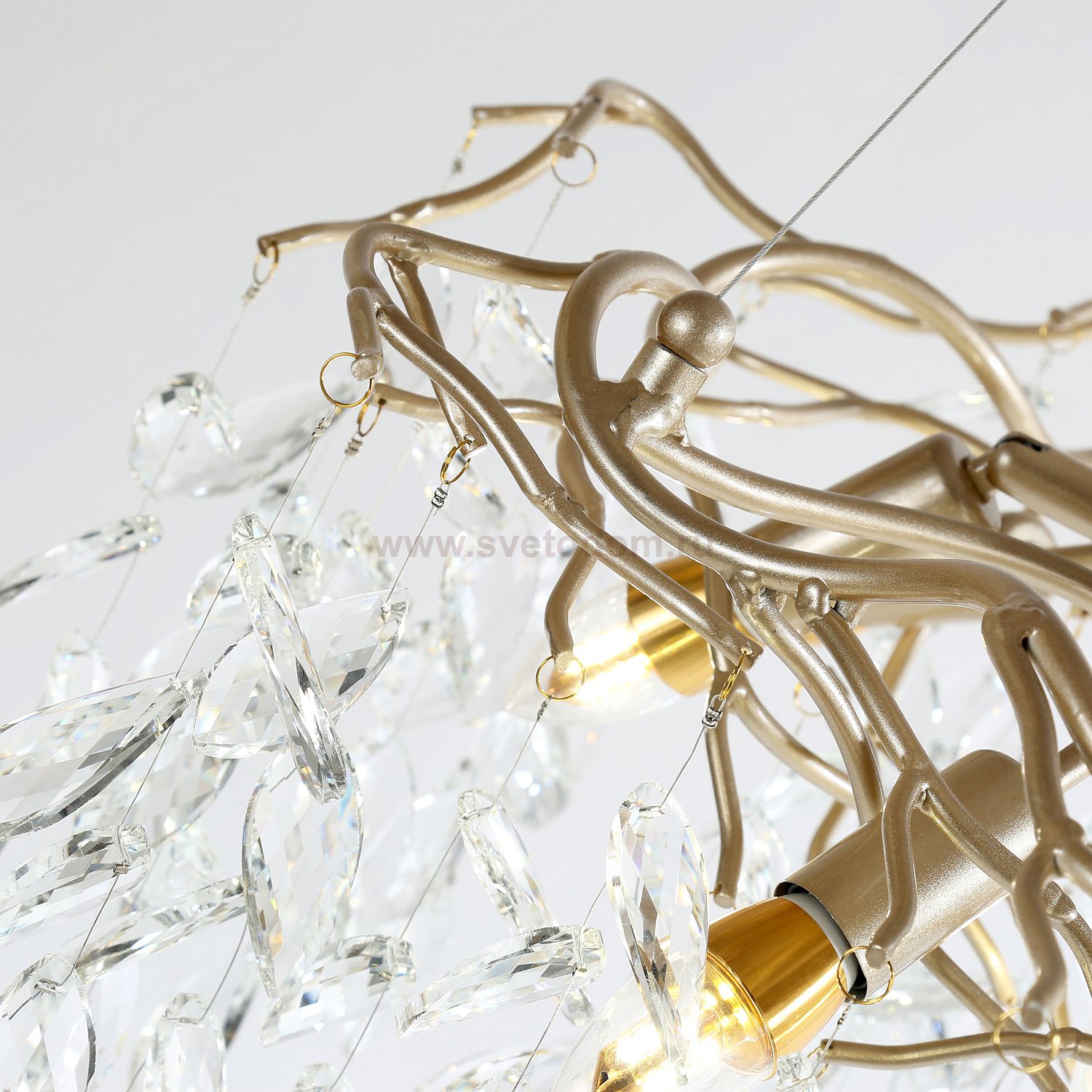 каркас цвета матового золота, напоминающий сплетенные ветви дерева, плафон декорирован хрустальными подвесками в виде листочков Серия