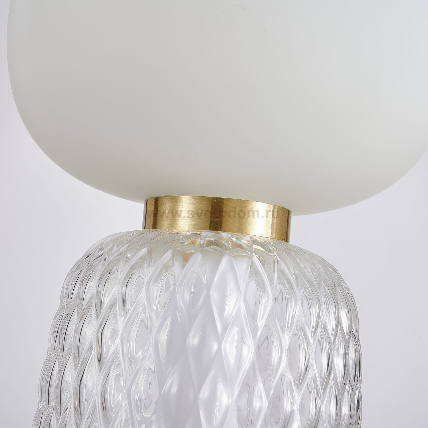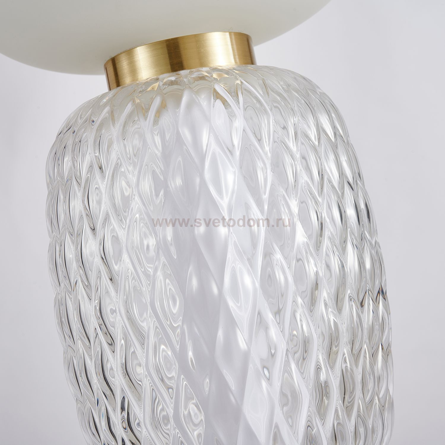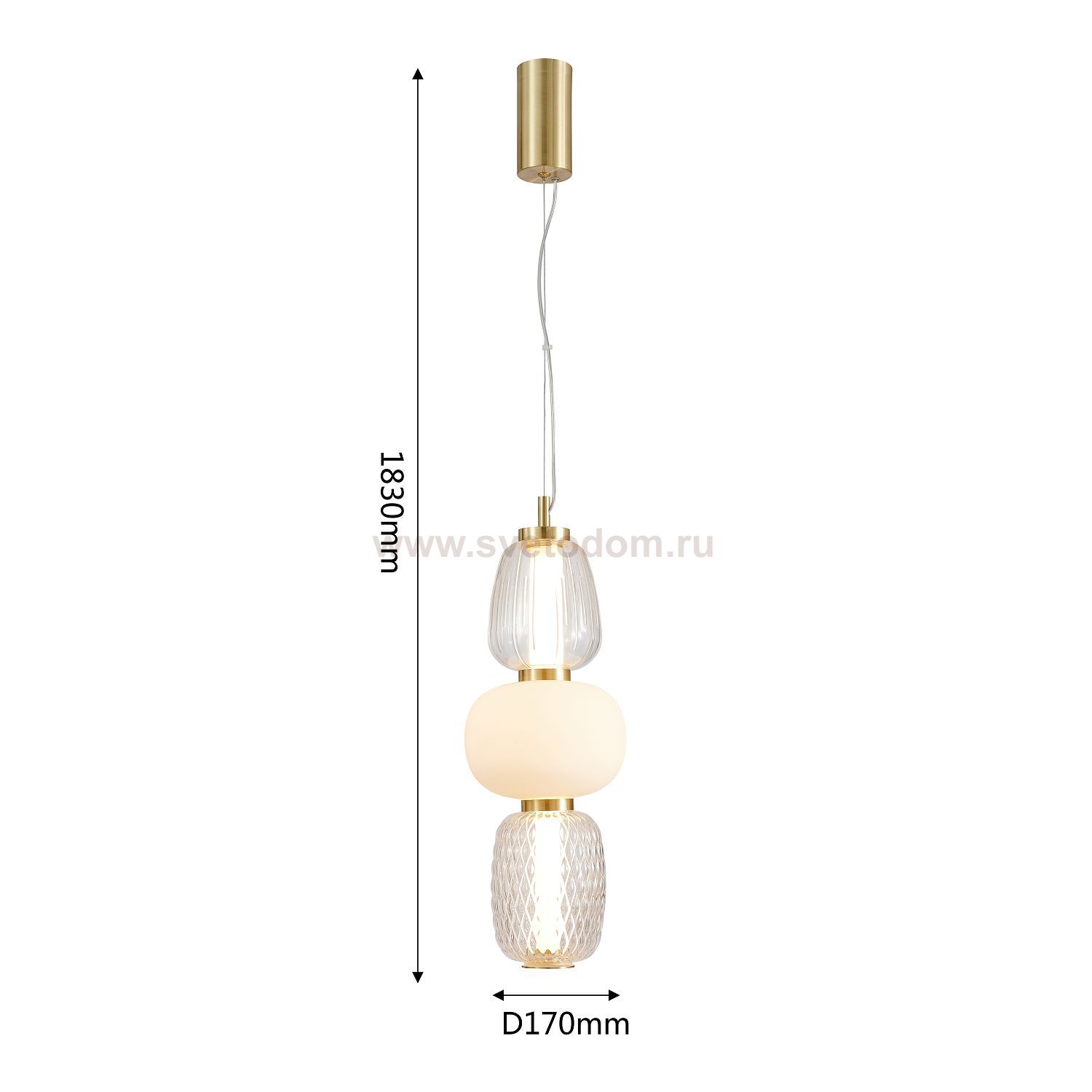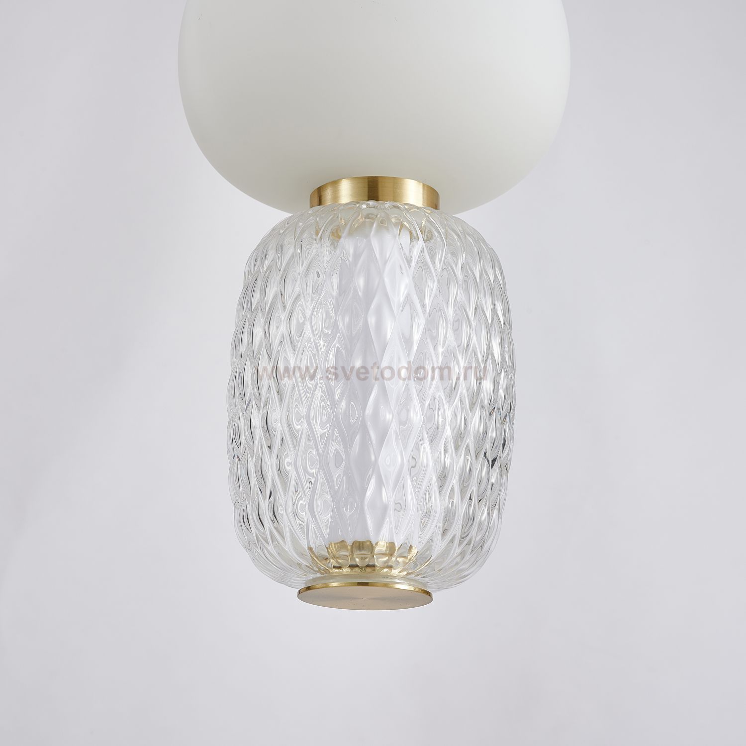 каркас цвета золота, плафоны в виде бусин разнообразных форм из выдувного стекла двух видов - прозрачного и цвета опала Серия
