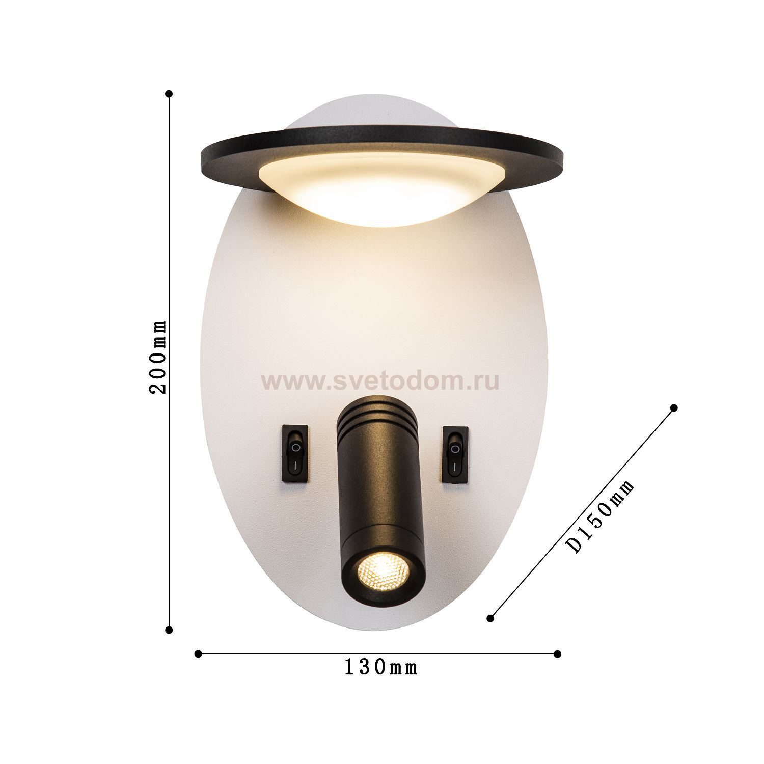 каркас сочетает белый и черный цвета, плафон из белого акрила, поворотный спот, два выключателя, USB-порт Серия