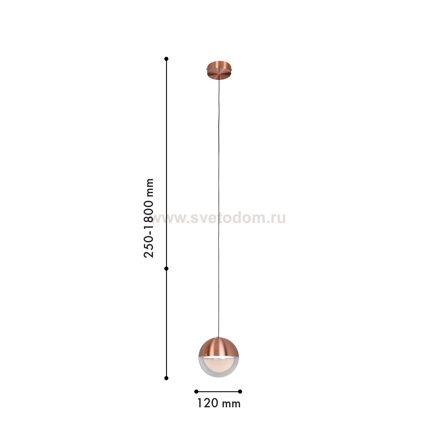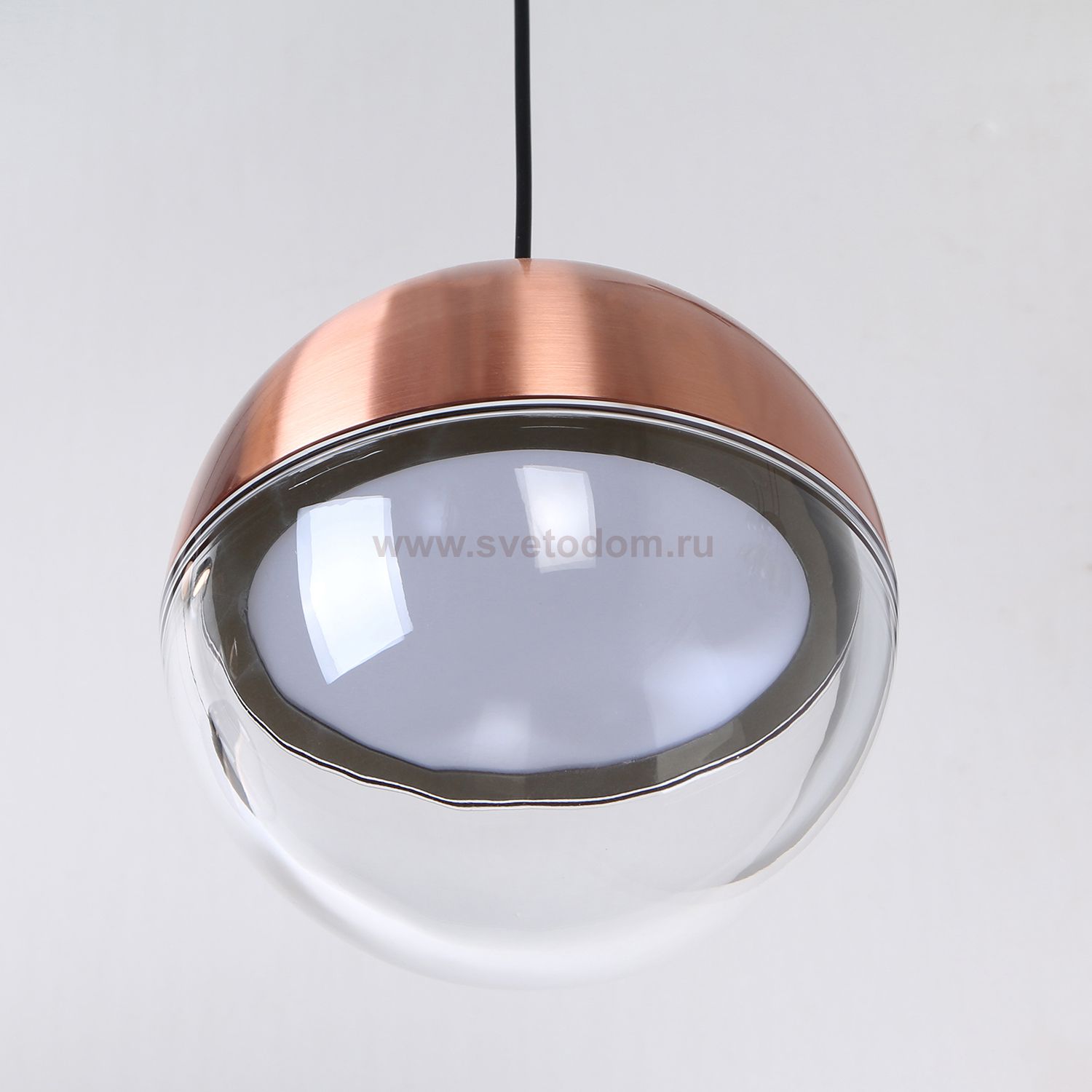 Подвес с шарообразным плафоном, с каркасом в цвете розовое золото, разделенным на две части — металлическую и акриловую, LED-модуль, регулируемая высо Серия