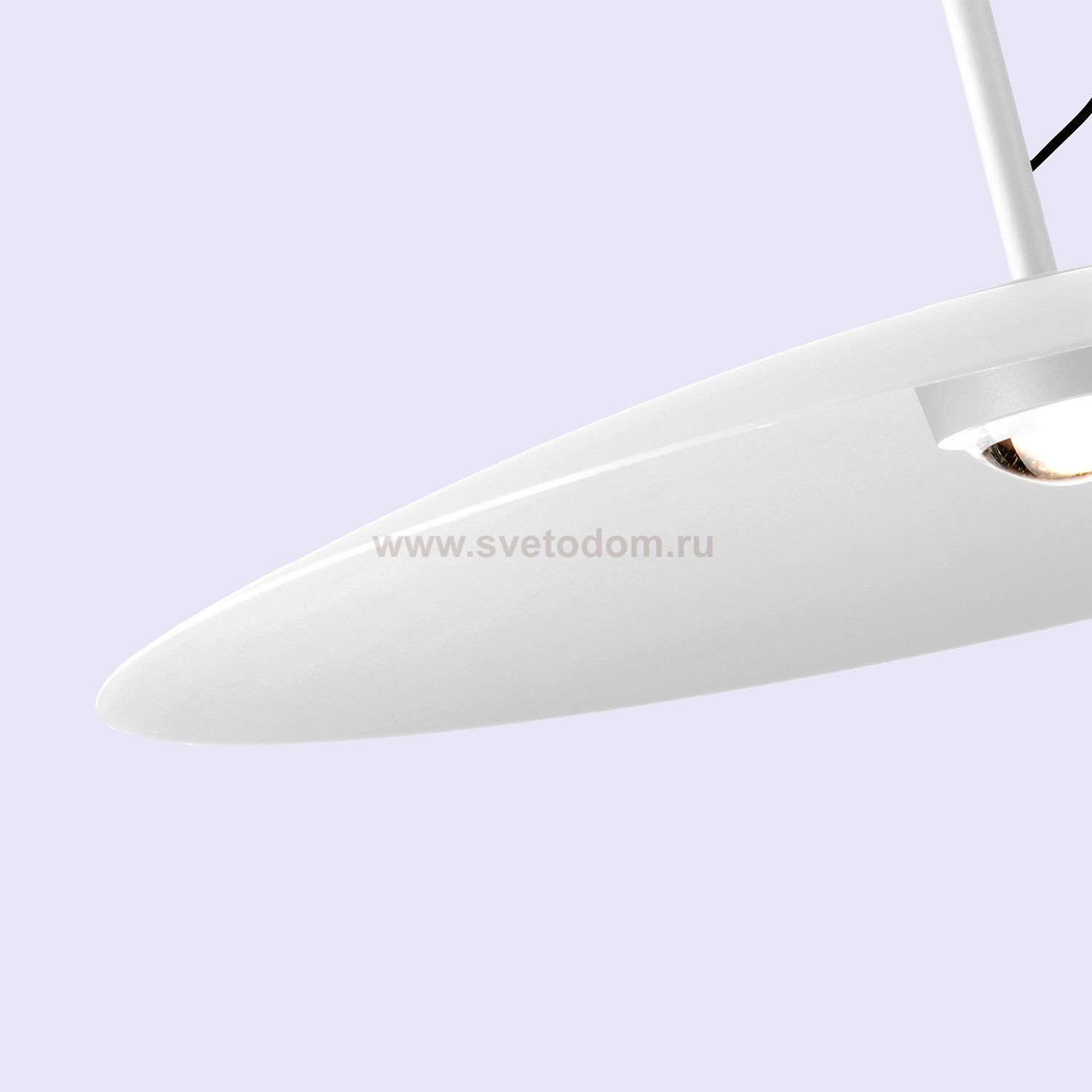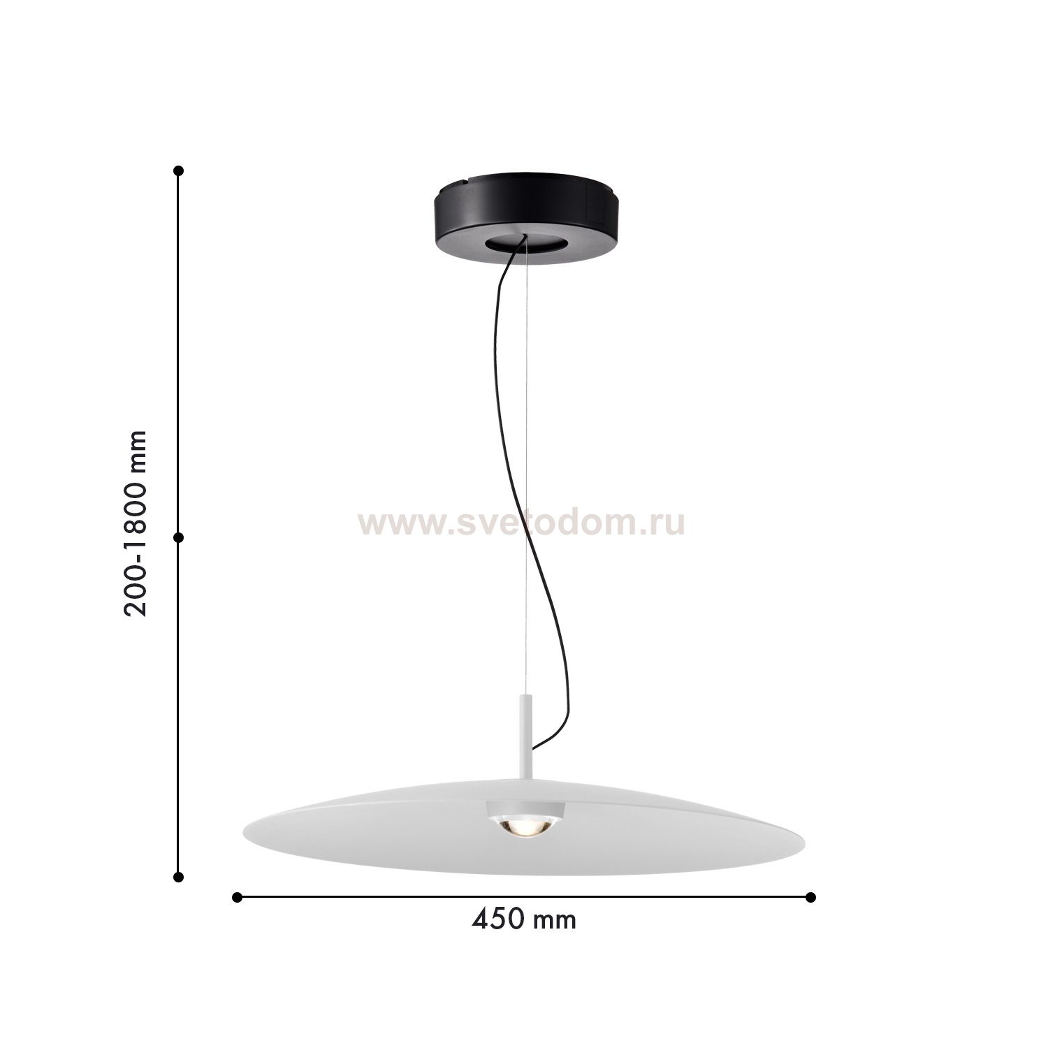 Подвес с черным каркасом, плафон в белом цвете с практически плоской формой купола, диаметром 45 см, алюминиевый плафон имеет лаконичный силуэт и осна Серия