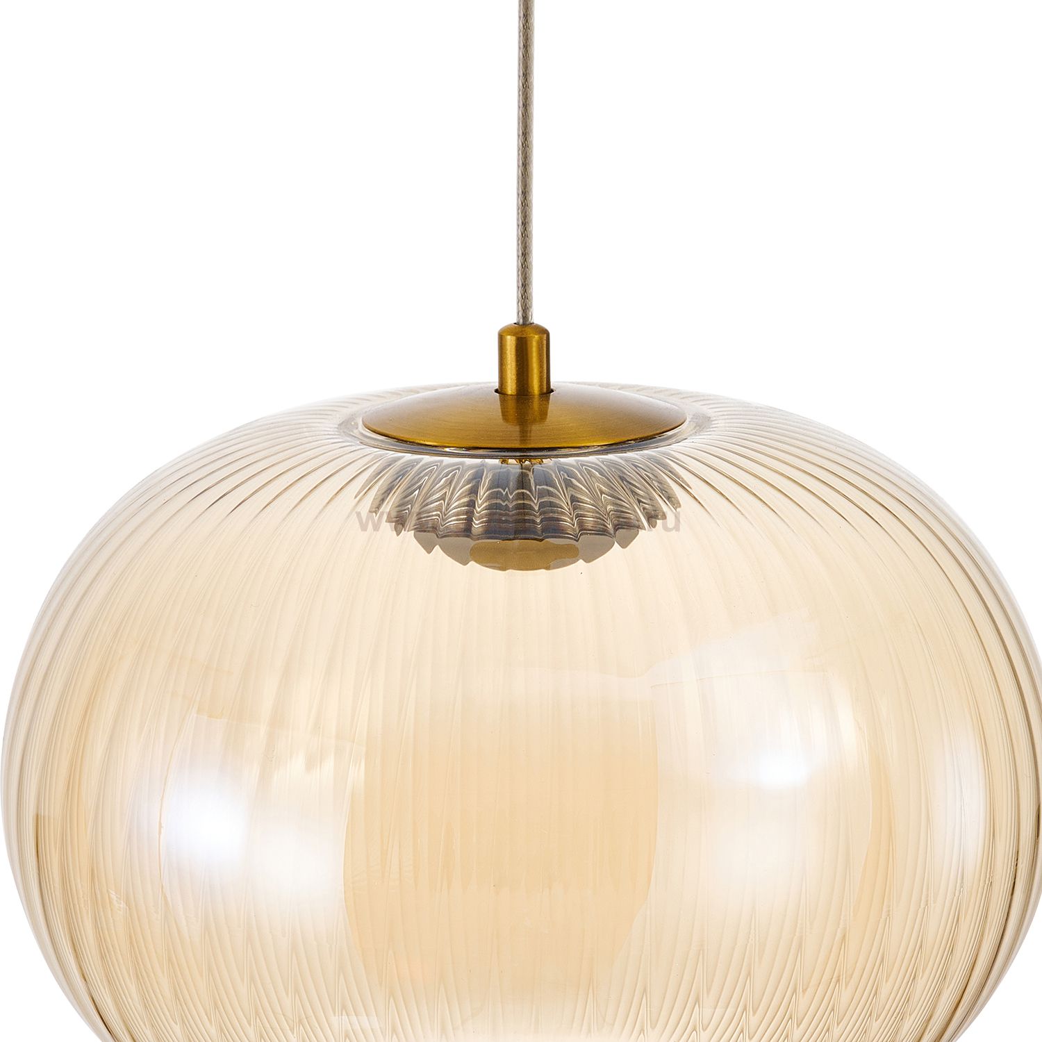 Подвес с латунным каркасом, с компактным приплюснутым выдувным плафоном в виде сферы, стекло коньячного цвета, LED-модуль, регулируемая высота Серия