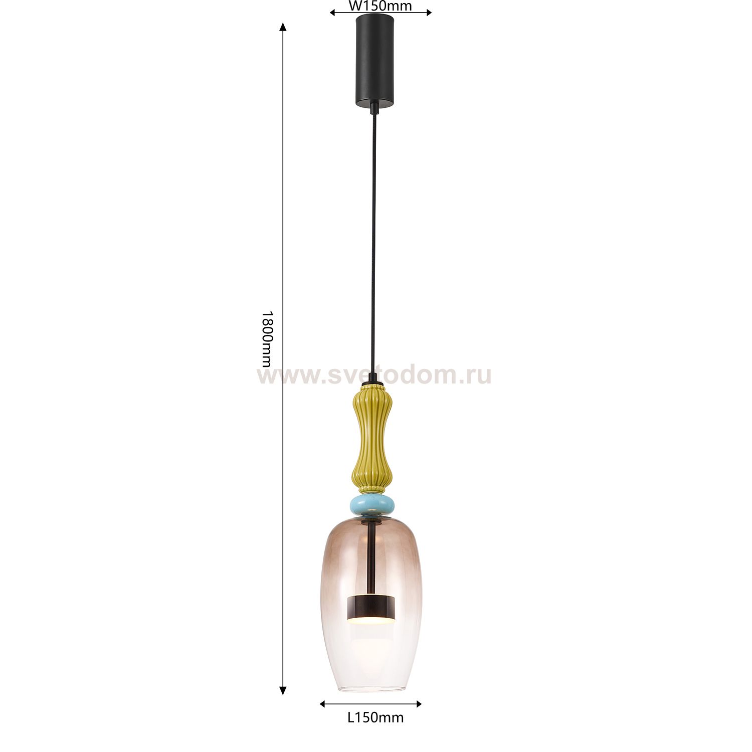 Подвес с черным каркасом, с керамическим декоративным элементом и плафоном в градиенте прозрачное и кофейное стекло, изготовлен из выдувного стекла с Декор