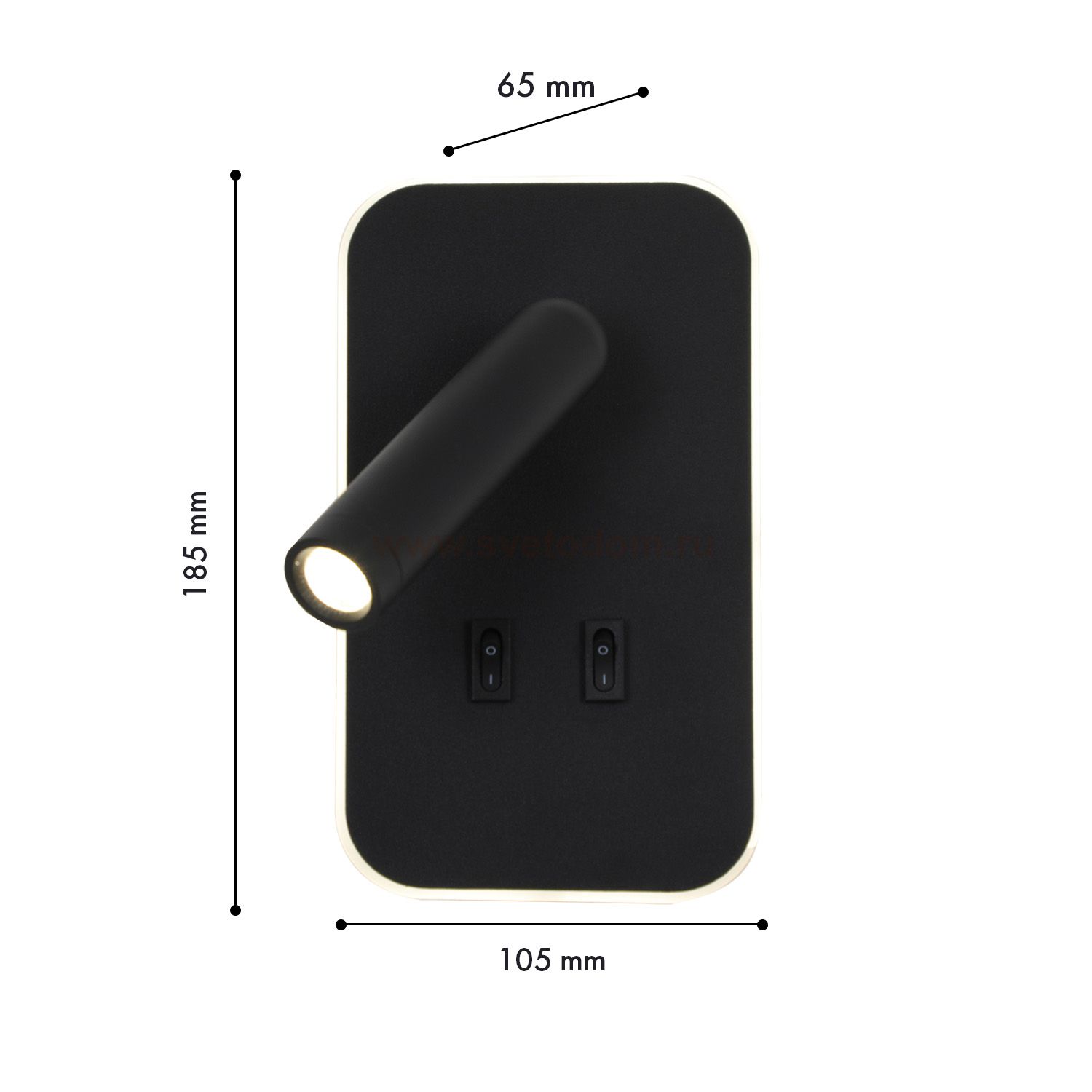Настенный светильник с каркасом в матовой черном цвете, открытые выключатели, в виде кнопок на корпусе, LED-лампы, угол поворота 90° и 350° Серия