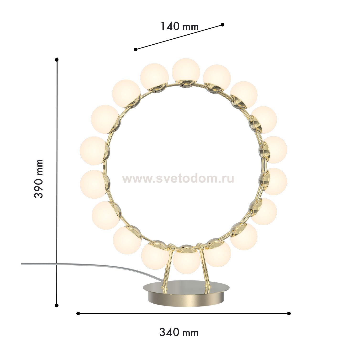 Настольный светильник с латунным каркасом, служащим проводником электричества, кольцо украшено белыми акриловыми шариками в качестве плафонов, LED-лам Серия