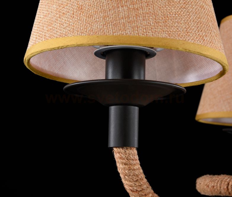 Особенности модели FR4402-PL-03-GB: Серия светильников создана под влиянием основных принципов экодизайна, с использованием натуральных материалов для предметов интерьера. Арматура люстры из матового черного металла с легким золотым патинированием гармонично сочетается с абажурами из холщовой натуральной ткани. Рожки и центральная часть люстры плотно обвиты холщовой веревкой. Окантовка на верхней и нижней части абажура желтопесочного цвета.