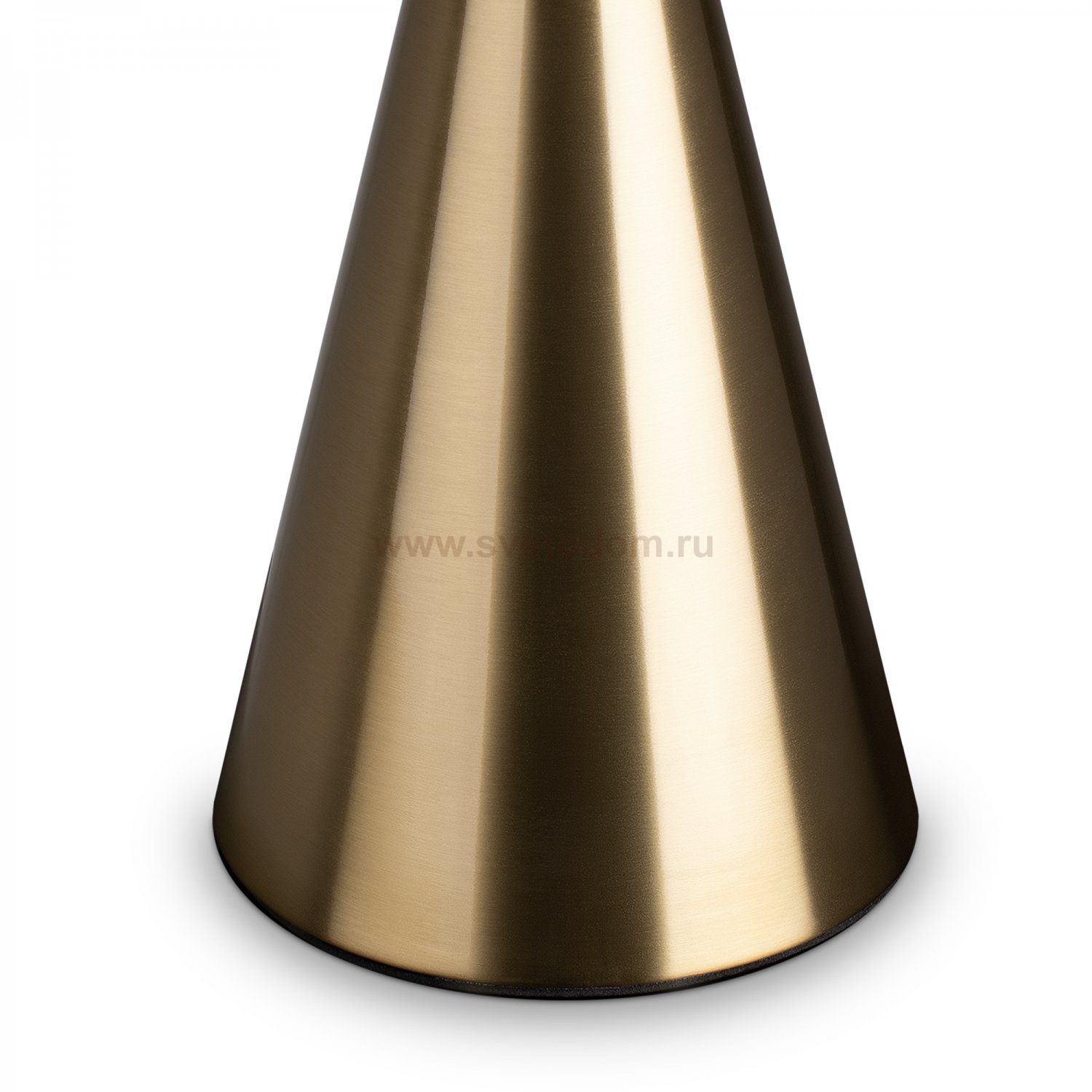 Материал арматуры — металл, цвета - латунь, черный. Плафон-сфера из белого матового цвета. Функция Touch позволяет включать и выключать свет. Источник света - лампа с цоколем Е14.