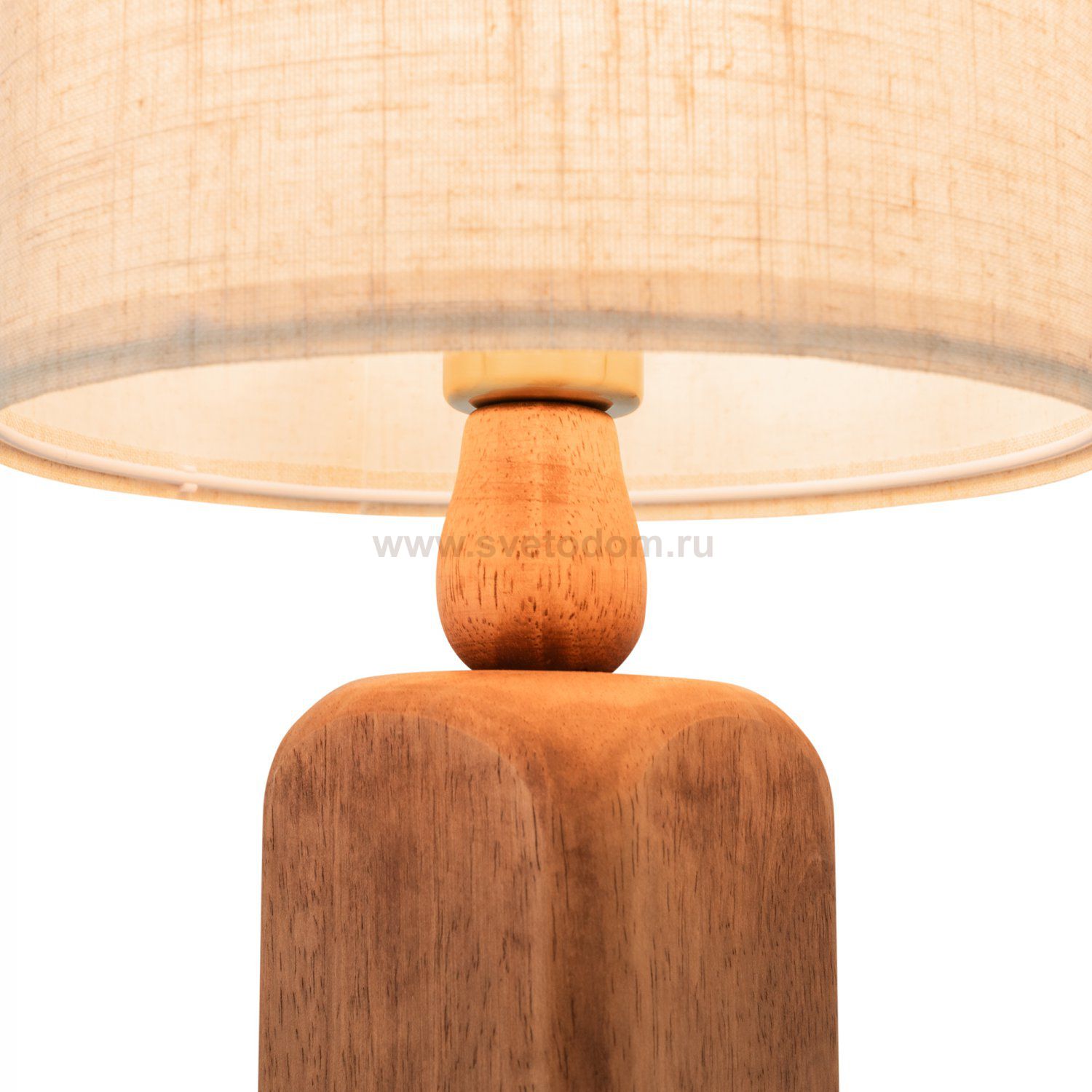 Основание светильника — натуральное дерево, цвет — бежевый. Тканевый абажур из натурального льна. Трендовый светильник в стиле эко. Источник света — лампа с цоколем E27. Подходят лампы Voltega 2427, 7065, 7134 и 7045.