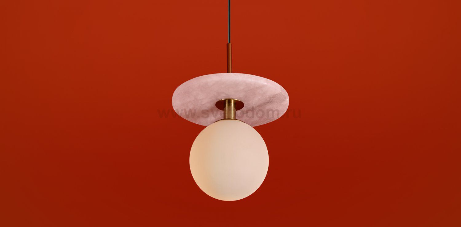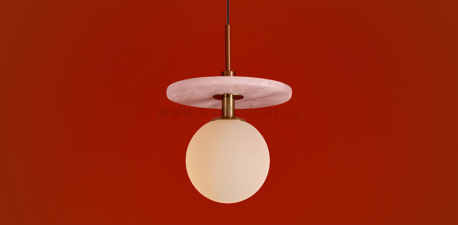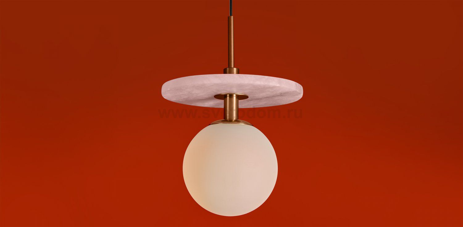 Арматура — металл. Плафоны из алебастра/камня и матового белого стекла. Версии с лампами G9 (не в комплекте) и с LED источником света. Высота регулируется.