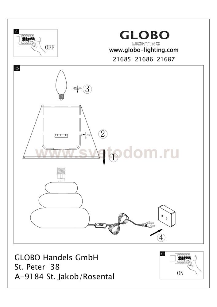 Настольная лампа – это не просто источник дополнительного освещения, но и оригинальный элемент декора. Его можно установить в спальне, гостиной, кабинете и других комнатах. Интернет-магазин «Светодом» предлагает настольные лампы разных стилей по доступным ценам. Благодаря большому ассортименту Вы обязательно найдете в нашем каталоге именно ту модель, которую искали. Настольная лампа Globo 21685 – прекрасный вариант для завершения интерьера. Ее можно включить одновременно с люстрой для более яркого освещения или без нее для создания уютной атмосферы, настраивающей на отдых. Купить настольную лампу Globo 21685 Вы можете с помощью виртуальной «Корзины» или по контактным номерам, указанным на сайте.