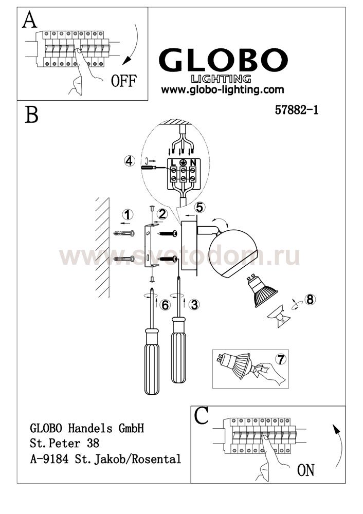 Купить светильник-спот Globo 57882-1 в нашем онлайн-магазине Вы можете либо с помощью формы на сайте, либо по указанным выше телефонам. Обратите внимание, что у нас склады не только в Москве и Екатеринбурге, но и других городах России.