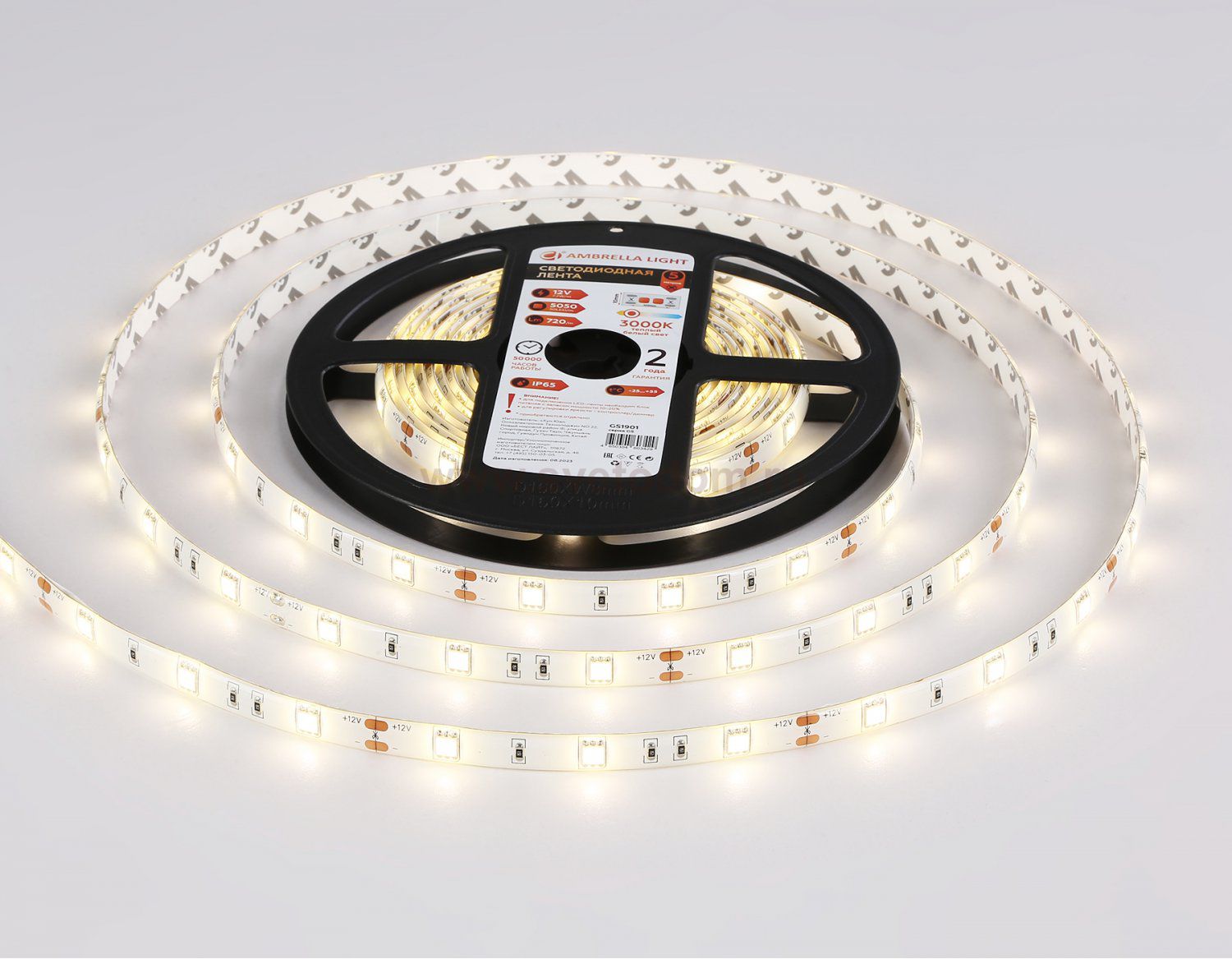 Светодиодная лента Ambrella Light GS1901 5050 30Led /7.2W m/ 12V IP65 3000K 5m Артикул производителя