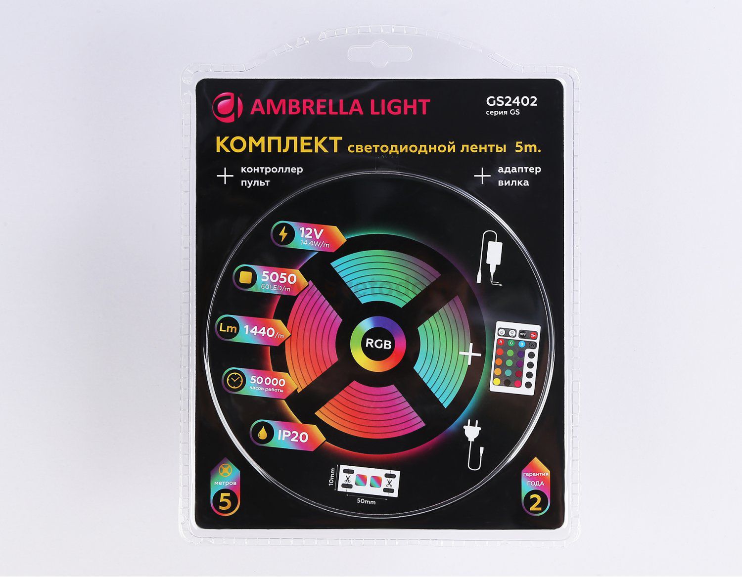 Комплект светодиодной ленты RGB Ambrella Light 5m GS2402 5050 60Led /14.4W m/ 12V IP20 RGB 5m Артикул производителя