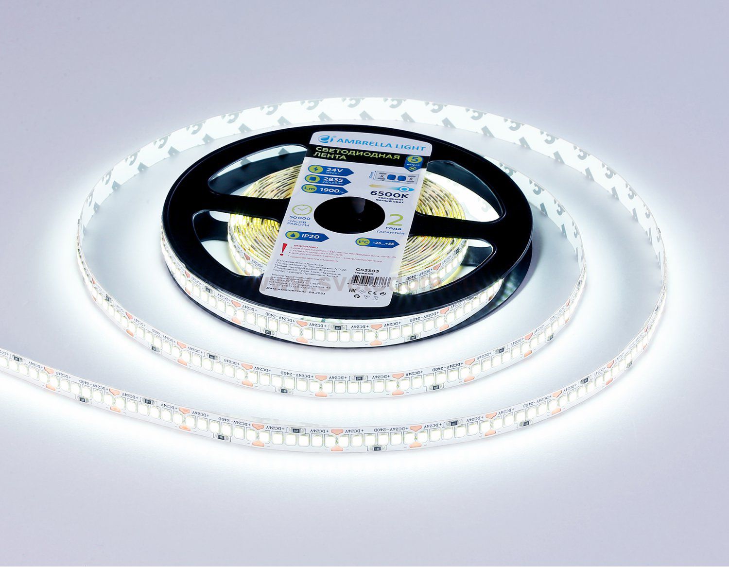 Светодиодная лента Ambrella Light GS3303 2835 240Led /18W m/ 24V IP20 6500K 5m Артикул производителя