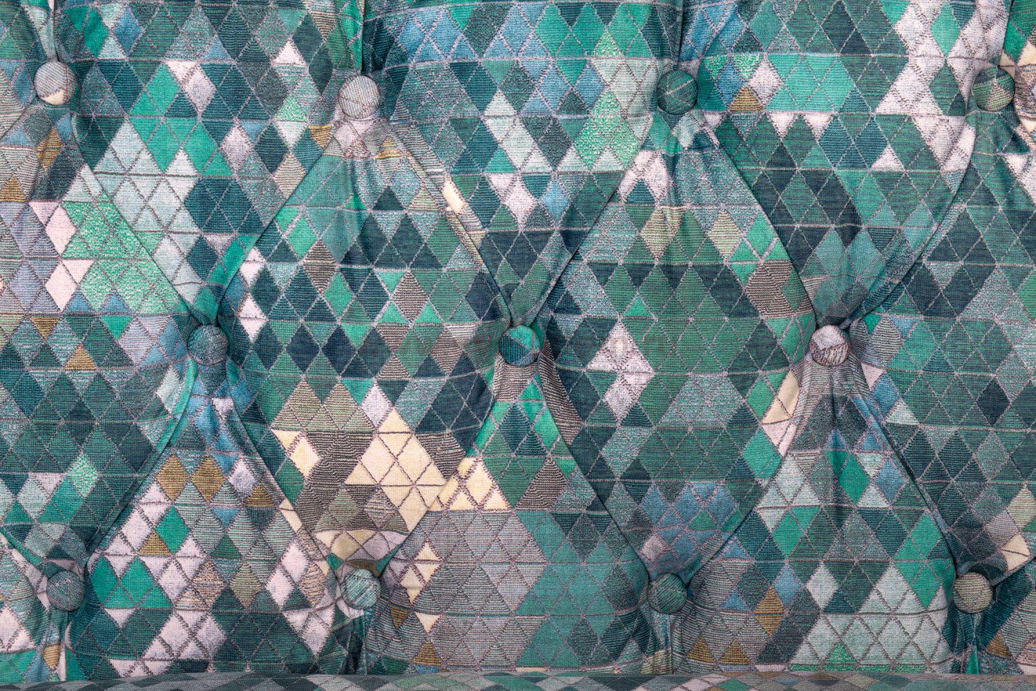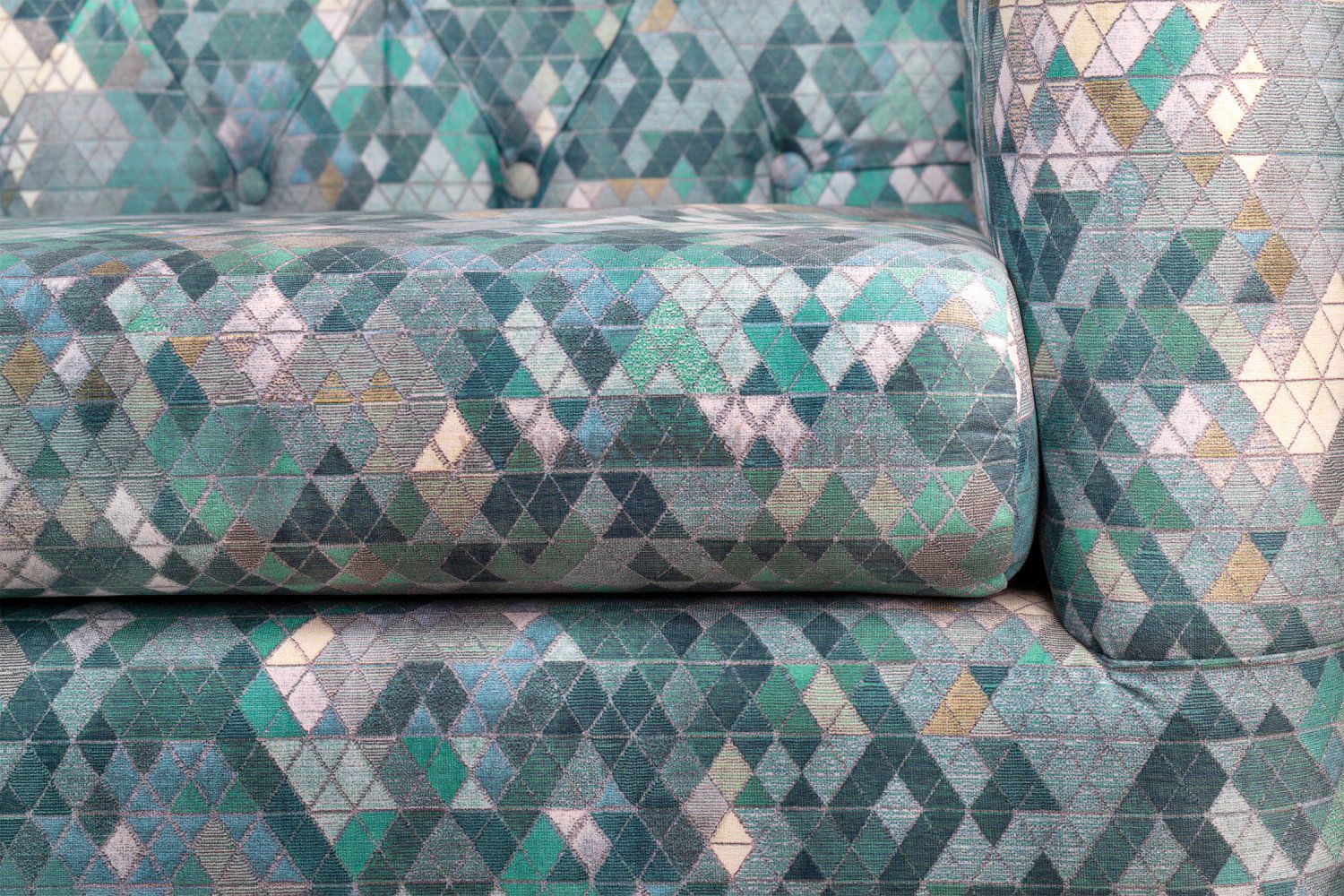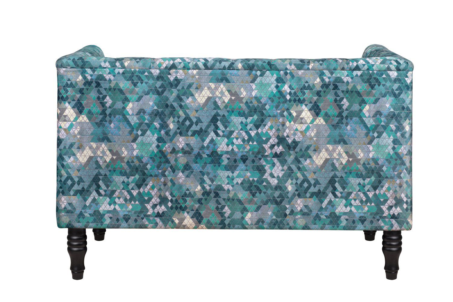 Двухместный зеленый диван Rose triangle с обивкой из велюра выполнен на основе каркаса из березового массива. Велюровая обивка с мягкой поверхностью эффектно смотрится и приятна на ощупь. На зеленом фоне ткани проходит рисунок из треугольных узоров. Короткие фигурные ножки покрыты лаком, обеспечивающим красивый блеск. Модель идеально подходит для небольших комнат, помогает создавать в них комфортную обстановку, без загромождения пространства.