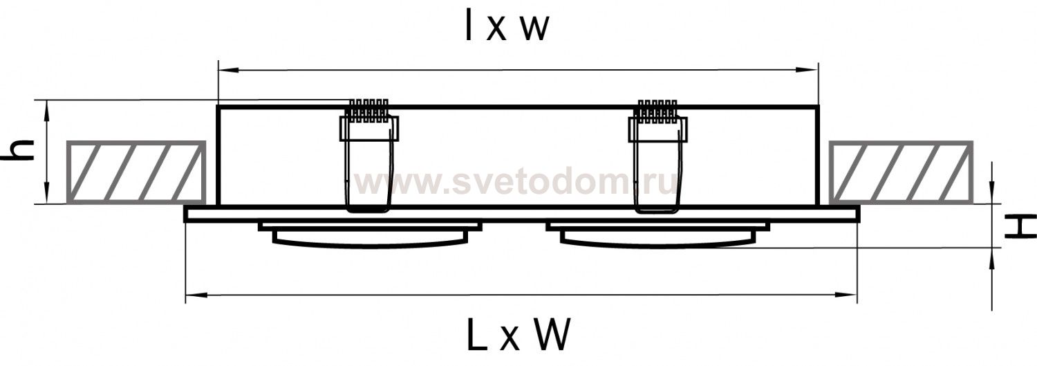 Врезное отверстие: 160x160 h60; Внешние габариты: 180x180 H5; Материал - основание/плафон: алюминий; Цвет-основание/плафон: белый; Лампа: 12В/220В MR16 Gu5,3 max 50Вт, 220В HP16 GU10/GZ10 max 50Вт;