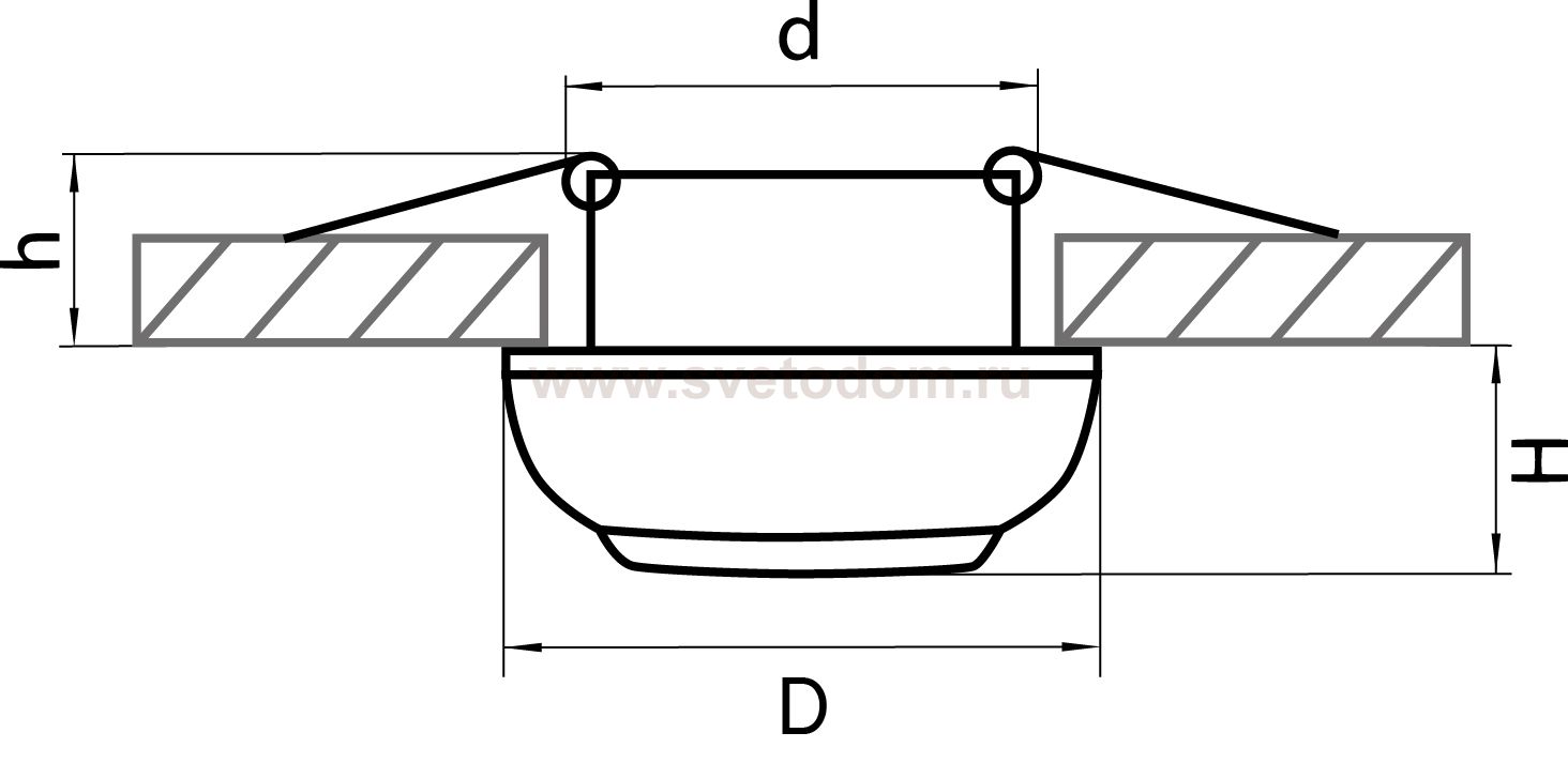 Данный размер указывает какое отверстие необходимо сделать для правильного монтажа. Зачастую светильники выбирают после ремонта и сделанных монтажных отверстий, тогда подбор осуществляется строго в размер +/- 2-5мм.