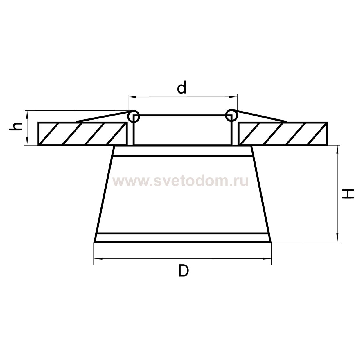Данный размер указывает какое отверстие необходимо сделать для правильного монтажа. Зачастую светильники выбирают после ремонта и сделанных монтажных отверстий, тогда подбор осуществляется строго в размер +/- 2-5мм.