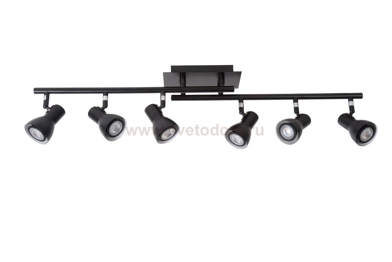 Track light Laura from LUCIDE is a sober armature lamp without frills. The track light has 6 directional spots, allowing any corner of a room to be lit. The six included 5W bulbs give beautiful light and are easy to dim. This track light certainly comes into its own in a large room.