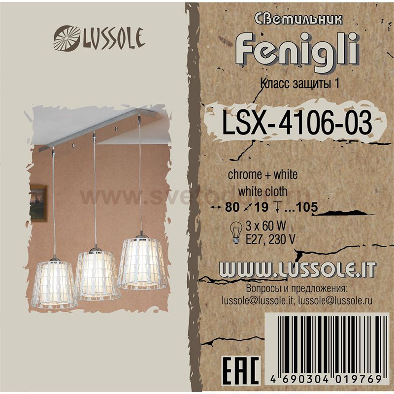 59 Отзывы Светильник подвесной Lussole LSX-4106-03 FENIGLIПока нет отзывов об этом товаре, напишите и он обязательно появится после модерации! Оставить свой отзывПохожие товары Другие товары магазина Фото