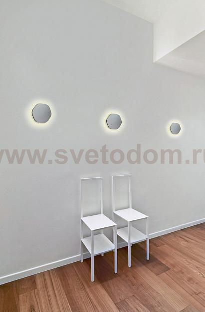 освещения. Ее минималистичный дизайн основан на мягких и чистых геометрических формах. Каждый из круглых, квадратных и шестиугольных настенных светильников доступен в серебристой, белой и черной отделке.