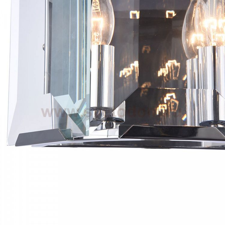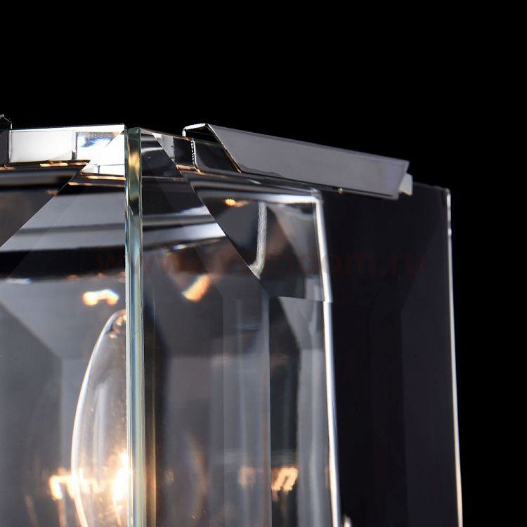 Арматура из металла, цвет – хром. Плафон составляют пластины из прозрачного оптического стекла. Металлический каркас плафона окрашен в тон арматуре. Высота подвесных моделелей регулируется.