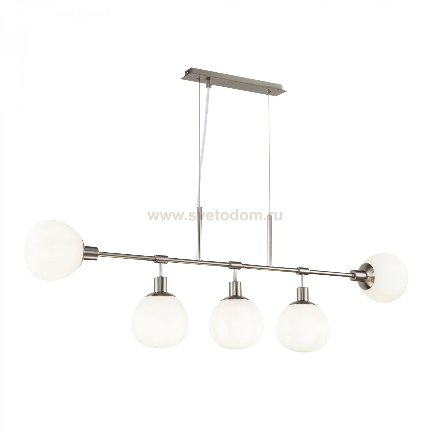 Металлическая арматура, цвет – никель, латунь. Плафоны – выдувное стекло белого цвета. Широкая семья. У торшера и настольной лампы можно изменять положение плафона. Регулируемая высота.