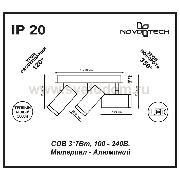 Данное значение указывает угол поворота, на который может поворачиваться светильник или угол рассеивания, на который светит лампа
