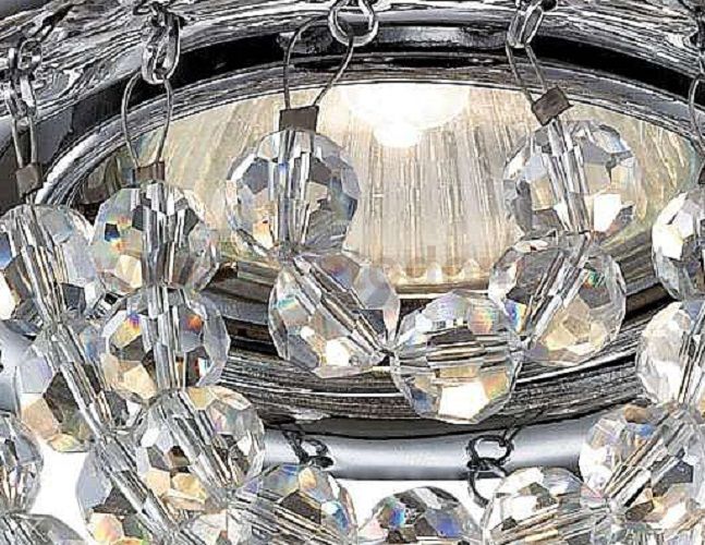 Основание светильника сделано из металла. Это популярный и востребованный материал благодаря ряду качеств. К ним относится: повышенная прочность, износостойкость и долговечность. Подвески изготовлены из хрусталя. Он обладает высоким показателем плотности, прозрачности и блеска. Благодаря содержанию свинца (не менее 30%) и определённому подбору углов, образуемых гранями, изделия из хрусталя отличаются необыкновенно яркой, многоцветной игрой света, чарующей магией красоты, совершенства и роскоши. А так же, он обладают красивым звоном.
