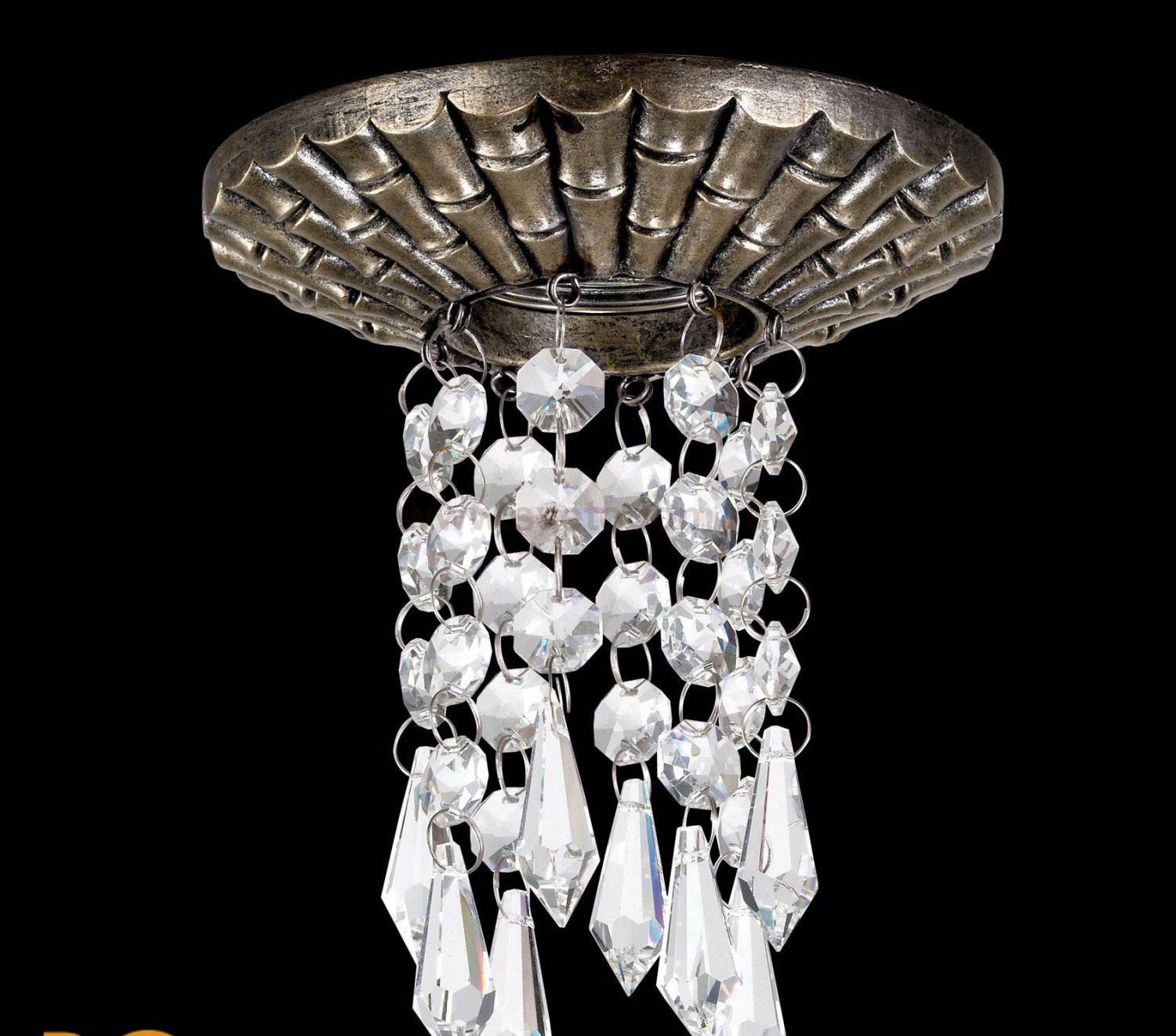 Основание светильника произведён из натурального камня песчаника. Его главные преимущества - долговечность, уникальные экологические и бактерицидные качества, чистота цвета, однородность структуры, малое влагопоглощение. Подвески сделаны из хрусталя. Он обладает высоким показателем плотности, прозрачности и блеска. Благодаря содержанию свинца (не менее 30%) и определённому подбору углов, образуемых гранями, изделия из хрусталя отличаются необыкновенно яркой, многоцветной игрой света, чарующей магией красоты, совершенства и роскоши. Комментарий
