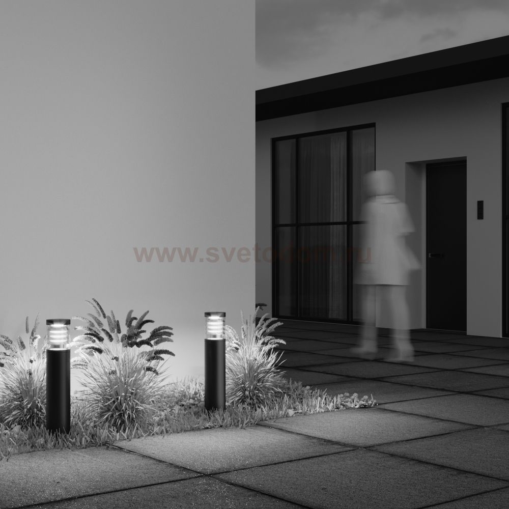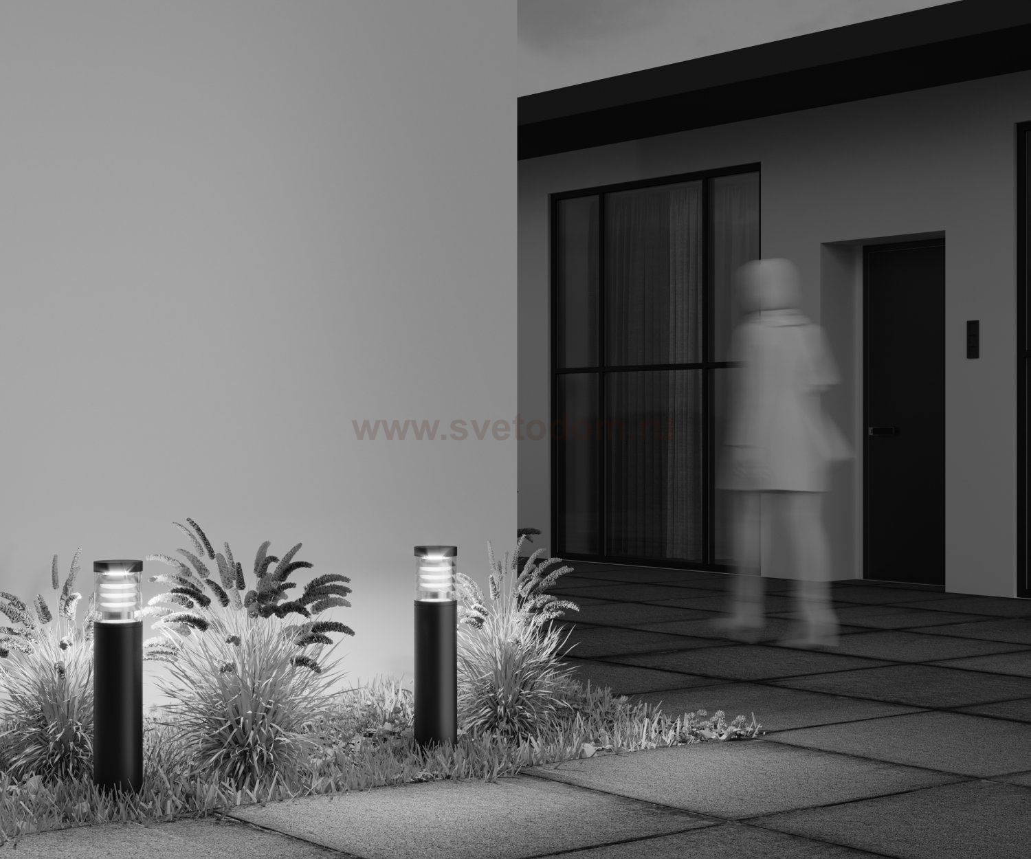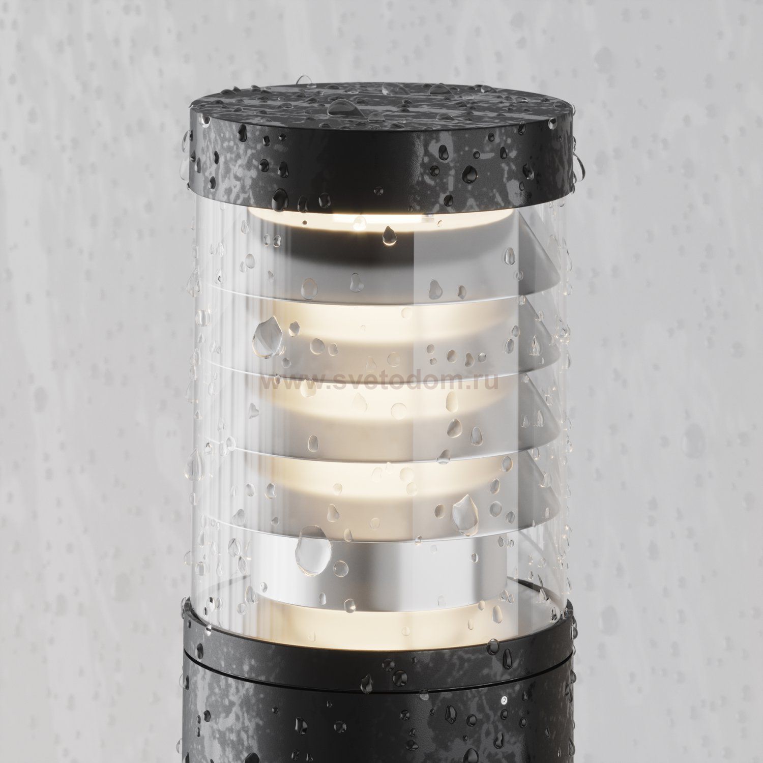 Алюминиевый корпус, цвет - графит. Многослойный каскадный рассеиватель серебристого цвета скрывает LED-источник света, предотвращая эффект слепимости и мягко рассеивает свет. Цветовая температура - 3000К. Степень защиты - IP54.