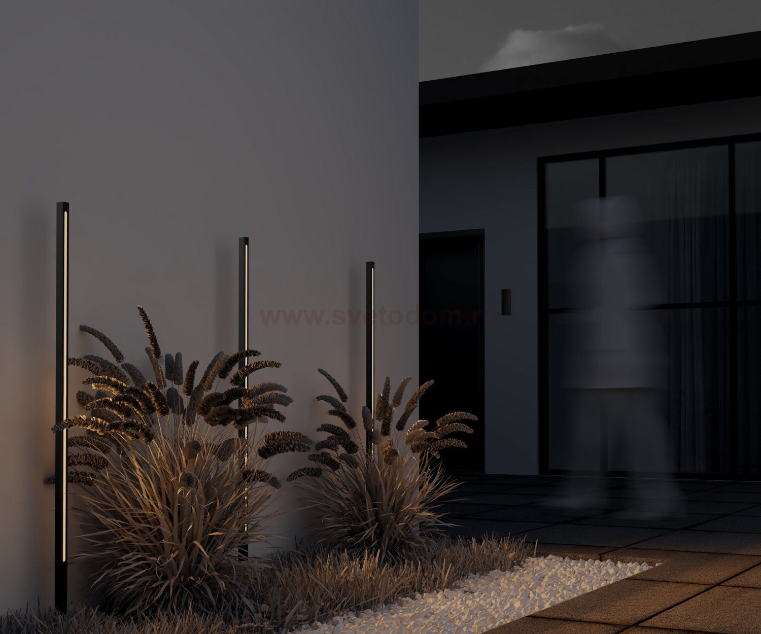 Материал корпуса - алюминий, цвет - графит. Прямоугольный вытянутый силуэт с полосой света в одну сторону. LED-источник света. Цветовая температура 3000К. Возможность установки как в грунтовую, так и жесткую бетонную поверхность. В комплекте - коннектор подключения. Серия подходит для основного и дополнительного освещения. Степень защиты - IP65.